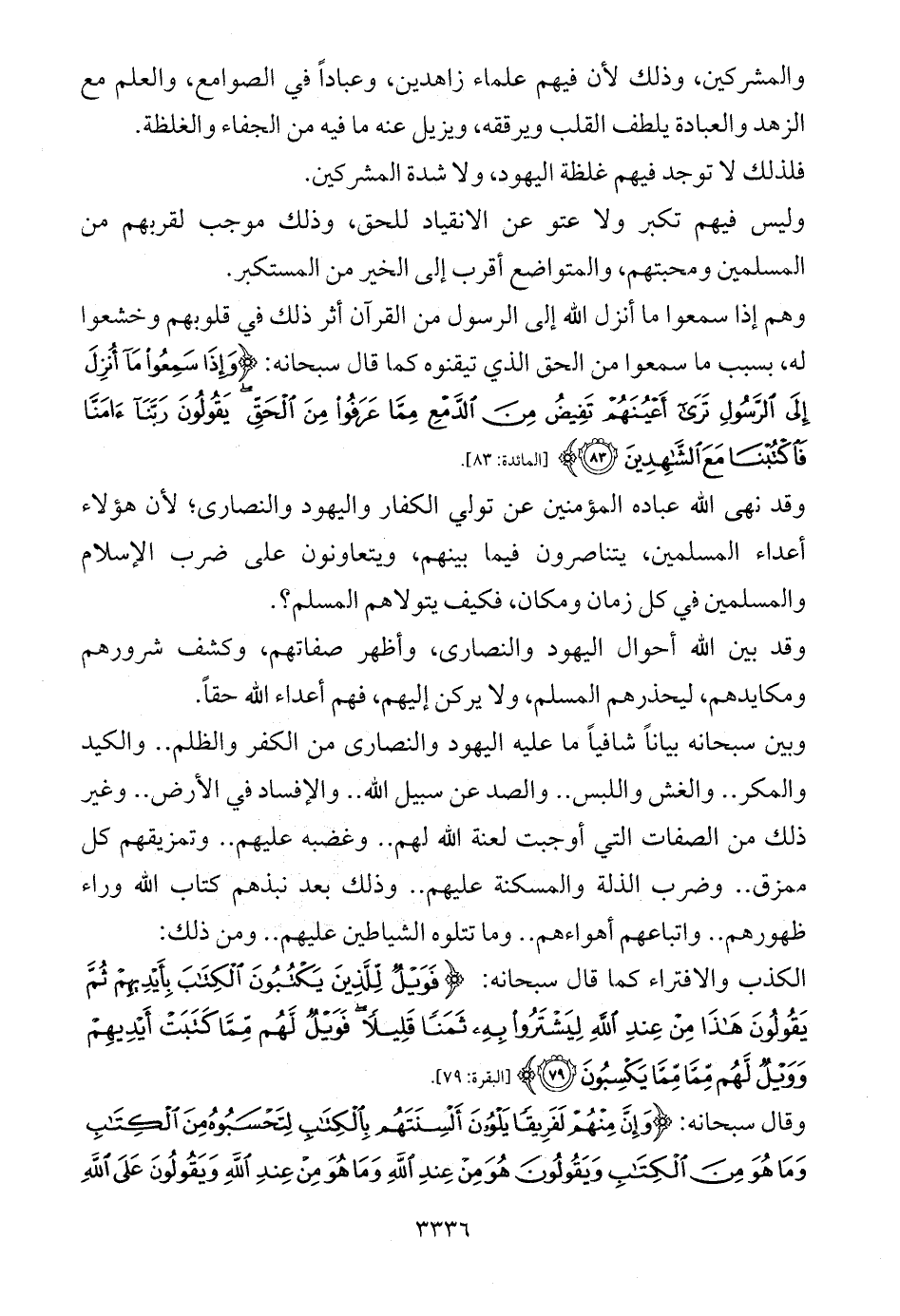 وقد بين الله أحوال اليهود والنصارى، وأظهر صفاتهم، وكشف شرورهم ومكايدهم، ليحذرهم المسلم، ولا يركن إليهم، فهم أعداء الله حقاً.