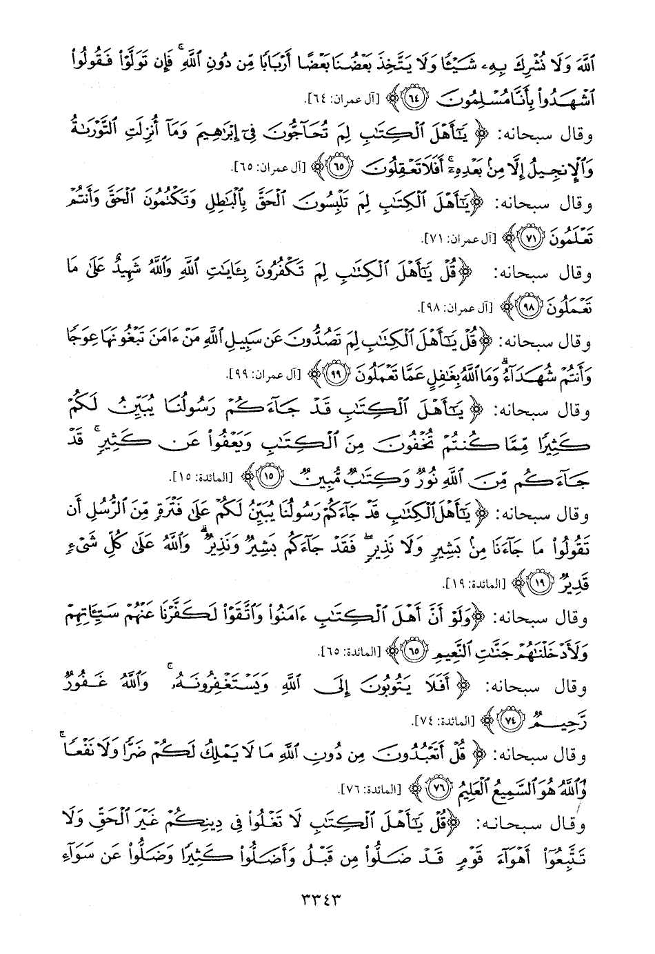 وقال سبحانه: {قُلْ يَاأَهْلَ الْكِتَابِ لَا تَغْلُوا فِي دِينِكُمْ غَيْرَ الْحَقِّ وَلَا تَتَّبِعُوا أَهْوَاءَ قَوْمٍ قَدْ ضَلُّوا مِنْ قَبْلُ وَأَضَلُّوا كَثِيرًا وَضَلُّوا عَنْ سَوَاءِ