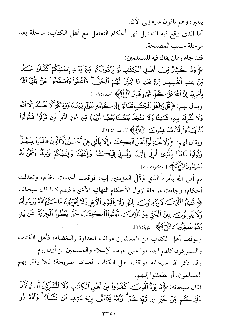 أما الذي وقع فيه التعديل فهو أحكام التعامل مع أهل الكتاب، مرحلة بعد مرحلة حسب المصلحة.