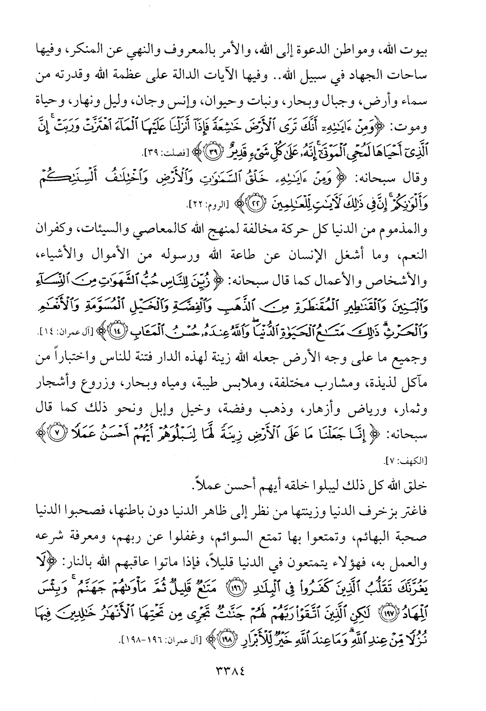 بيوت الله، ومواطن الدعوة إلى الله، والأمر بالمعروف والنهي عن المنكر، وفيها ساحات الجهاد في سبيل الله .. وفيها الآيات الدالة على عظمة الله وقدرته من سماء وأرض، وجبال وبحار، ونبات وحيوان، وإنس وجان، وليل ونهار، وحياة وموت: {وَمِنْ آيَاتِهِ أَنَّكَ تَرَى الْأَرْضَ خَاشِعَةً فَإِذَا أَنْزَلْنَا عَلَيْهَا الْمَاءَ اهْتَزَّتْ وَرَبَتْ إِنَّ الَّذِي أَحْيَاهَا لَمُحْيِ الْمَوْتَى إِنَّهُ عَلَى كُلِّ شَيْءٍ قَدِيرٌ (39)} [فصلت: 39].