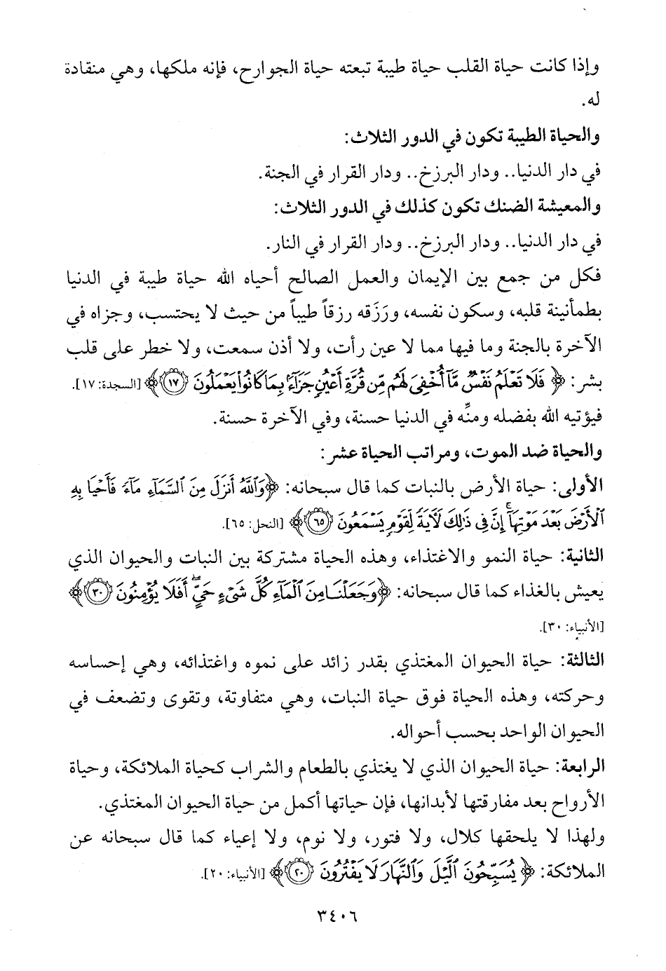 الثانية: حياة النمو والاغتذاء، وهذه الحياة مشتركة بين النبات والحيوان الذي يعيش بالغذاء كما قال سبحانه: {وَجَعَلْنَا مِنَ الْمَاءِ كُلَّ شَيْءٍ حَيٍّ أَفَلَا يُؤْمِنُونَ (30)} [الأنبياء: 30].