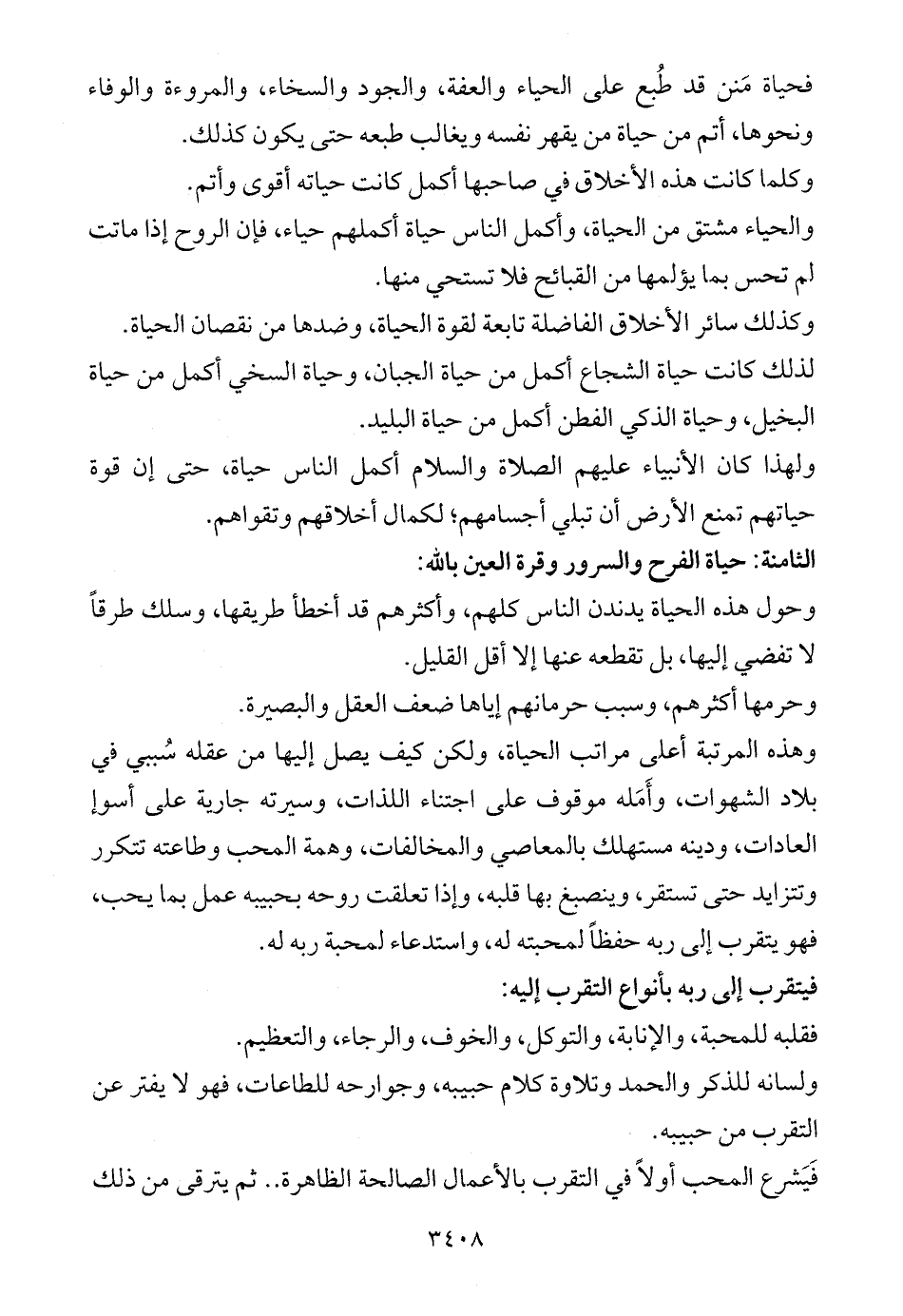 فحياة مَنن قد طُبع على الحياء والعفة، والجود والسخاء، والمروءة والوفاء ونحوها، أتم من حياة من يقهر نفسه ويغالب طبعه حتى يكون كذلك.