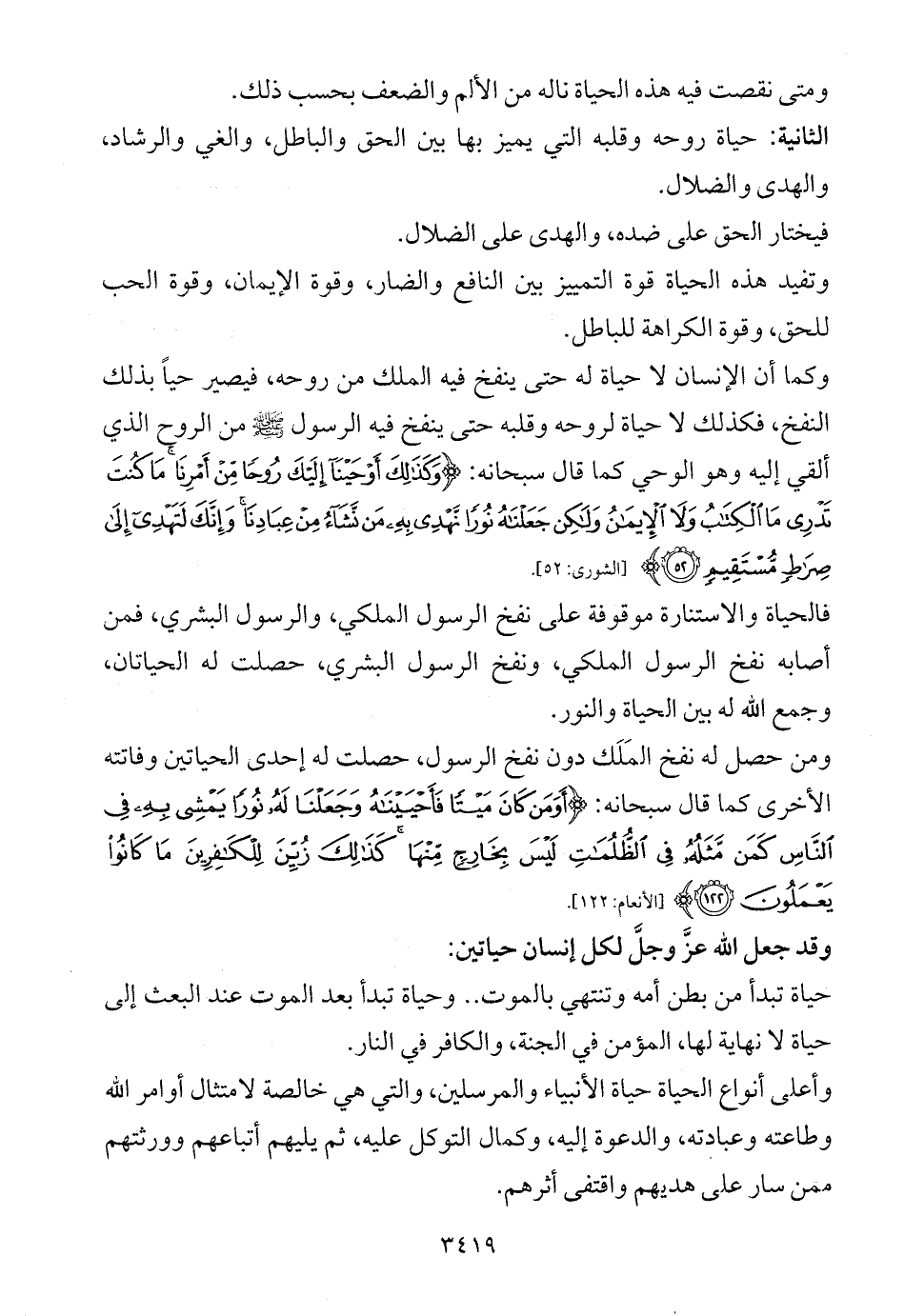 وأعلى أنواع الحياة حياة الأنبياء والمرسلين، والتي هي خالصة لامتثال أوامر الله وطاعته وعبادته، والدعوة إليه، وكمال التوكل عليه، ثم يليهم أتباعهم وورثتهم ممن سار على هديهم واقتفى أثرهم.