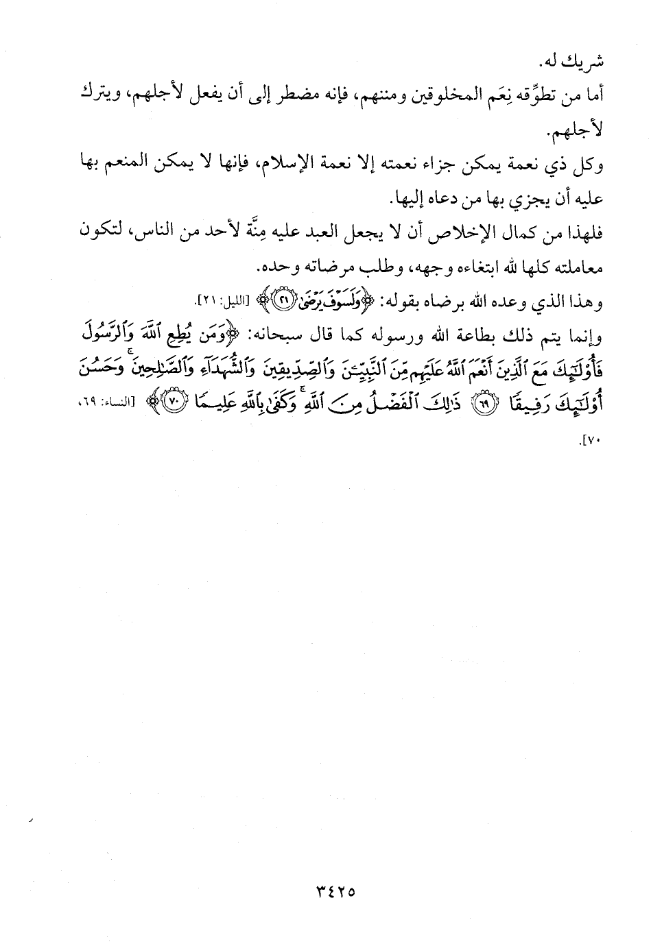 فلهذا من كمال الإخلاص أن لا يجعل العبد عليه مِنَّة لأحد من الناس، لتكون معاملته كلها لله ابتغاءه وجهه، وطلب مرضاته وحده.