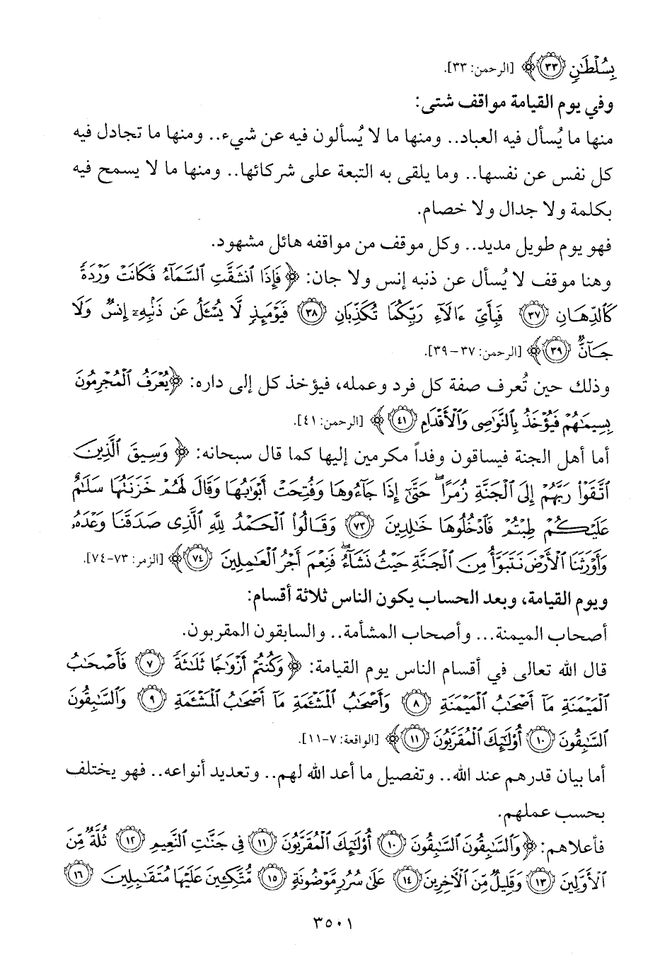 ويوم القيامة، وبعد الحساب يكون الناس ثلاثة أقسام: