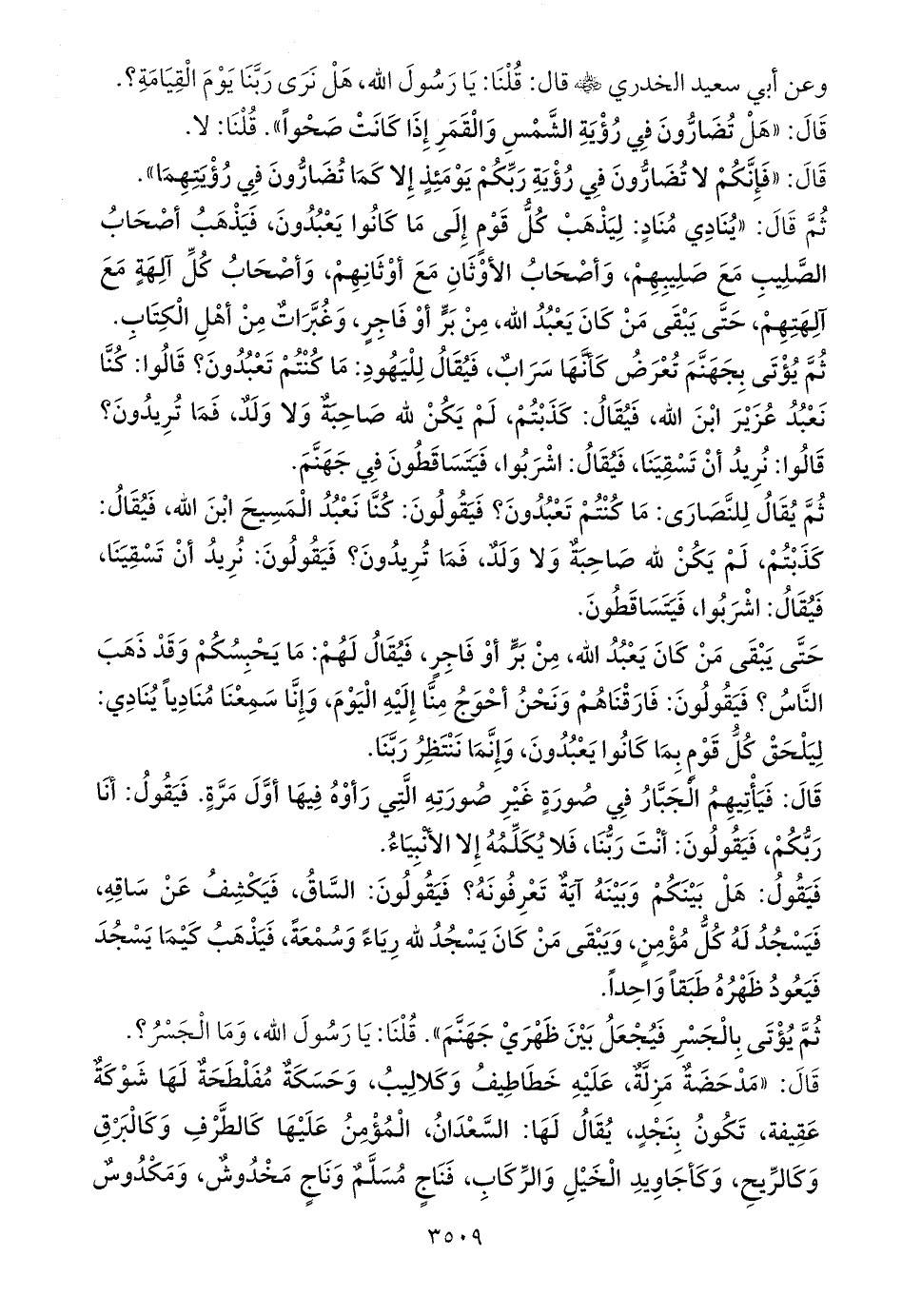 وعن أبي سعيد الخدري - رضي الله عنه - قال: قُلْنَا: يَا رَسُولَ الله، هَلْ نَرَى رَبَّنَا يَوْمَ الْقِيَامَةِ؟.