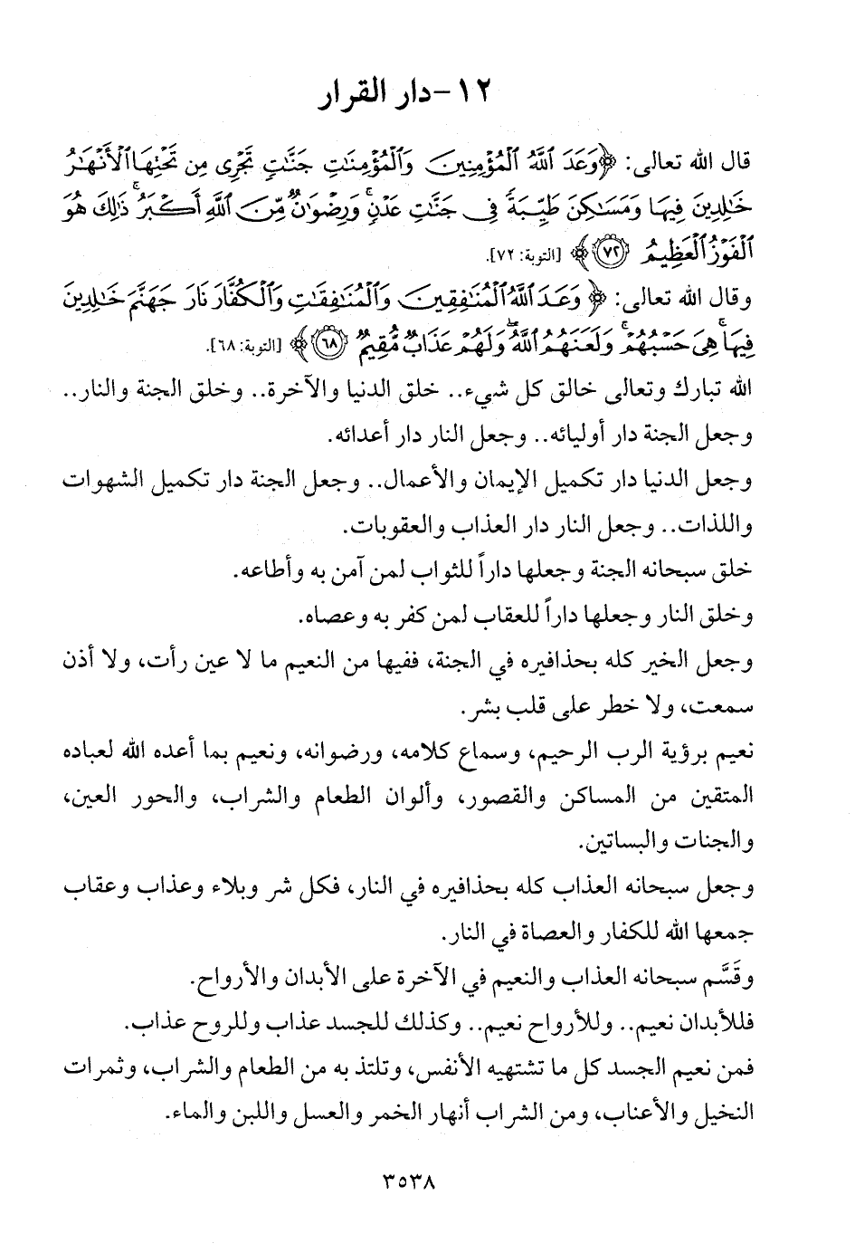 وجعل الدنيا دار تكميل الإيمان والأعمال .. وجعل الجنة دار تكميل الشهوات واللذات .. وجعل النار دار العذاب والعقوبات.