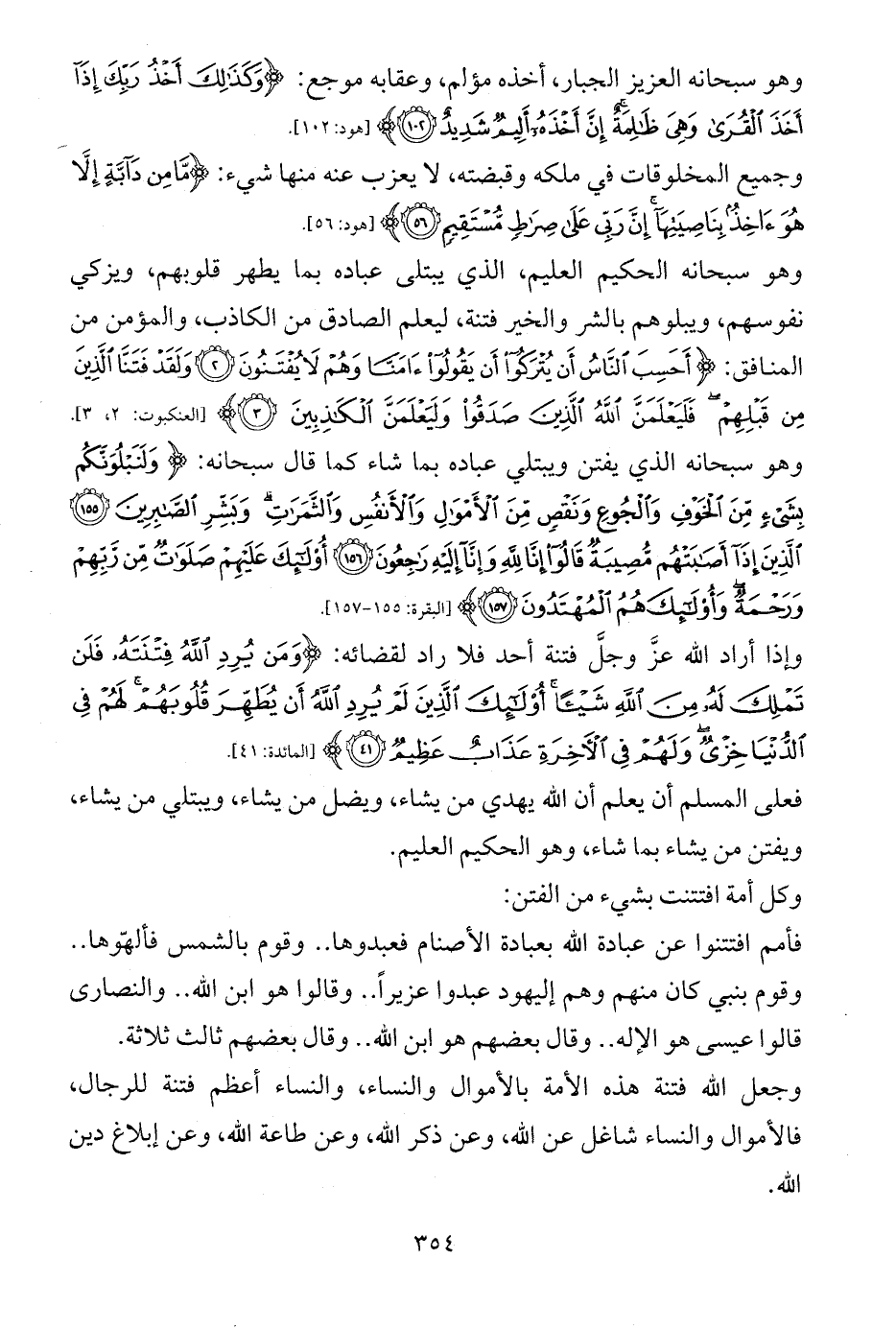 وهو سبحانه الذي يفتن ويبتلي عباده بما شاء كما قال سبحانه: {وَلَنَبْلُوَنَّكُمْ بِشَيْءٍ مِنَ الْخَوْفِ وَالْجُوعِ وَنَقْصٍ مِنَ الْأَمْوَالِ وَالْأَنْفُسِ وَالثَّمَرَاتِ وَبَشِّرِ الصَّابِرِينَ (155) الَّذِينَ إِذَا أَصَابَتْهُمْ مُصِيبَةٌ قَالُوا إِنَّا لِلَّهِ وَإِنَّا إِلَيْهِ رَاجِعُونَ (156) أُولَئِكَ عَلَيْهِمْ صَلَوَاتٌ مِنْ رَبِّهِمْ وَرَحْمَةٌ وَأُولَئِكَ هُمُ الْمُهْتَدُونَ (157)} [البقرة: 155 - 157].