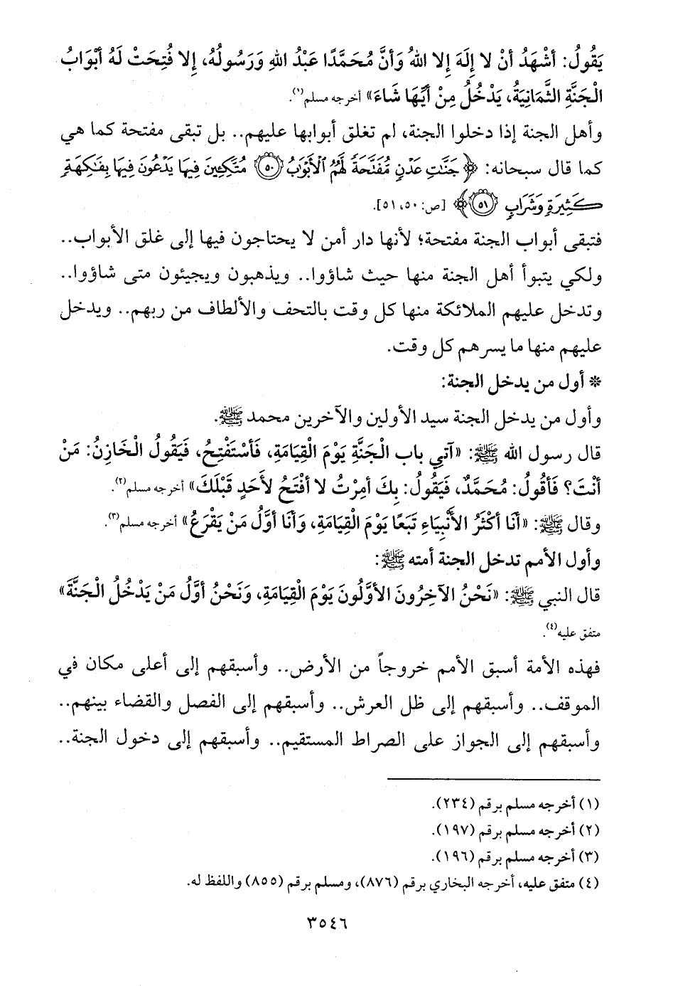 قال النبي - صلى الله عليه وسلم -: «نَحْنُ الآخِرُونَ الأوَّلُونَ يَوْمَ الْقِيَامَةِ، وَنَحْنُ أوَّلُ مَنْ يَدْخُلُ الْجَنَّةَ» متفق عليه (¬4).