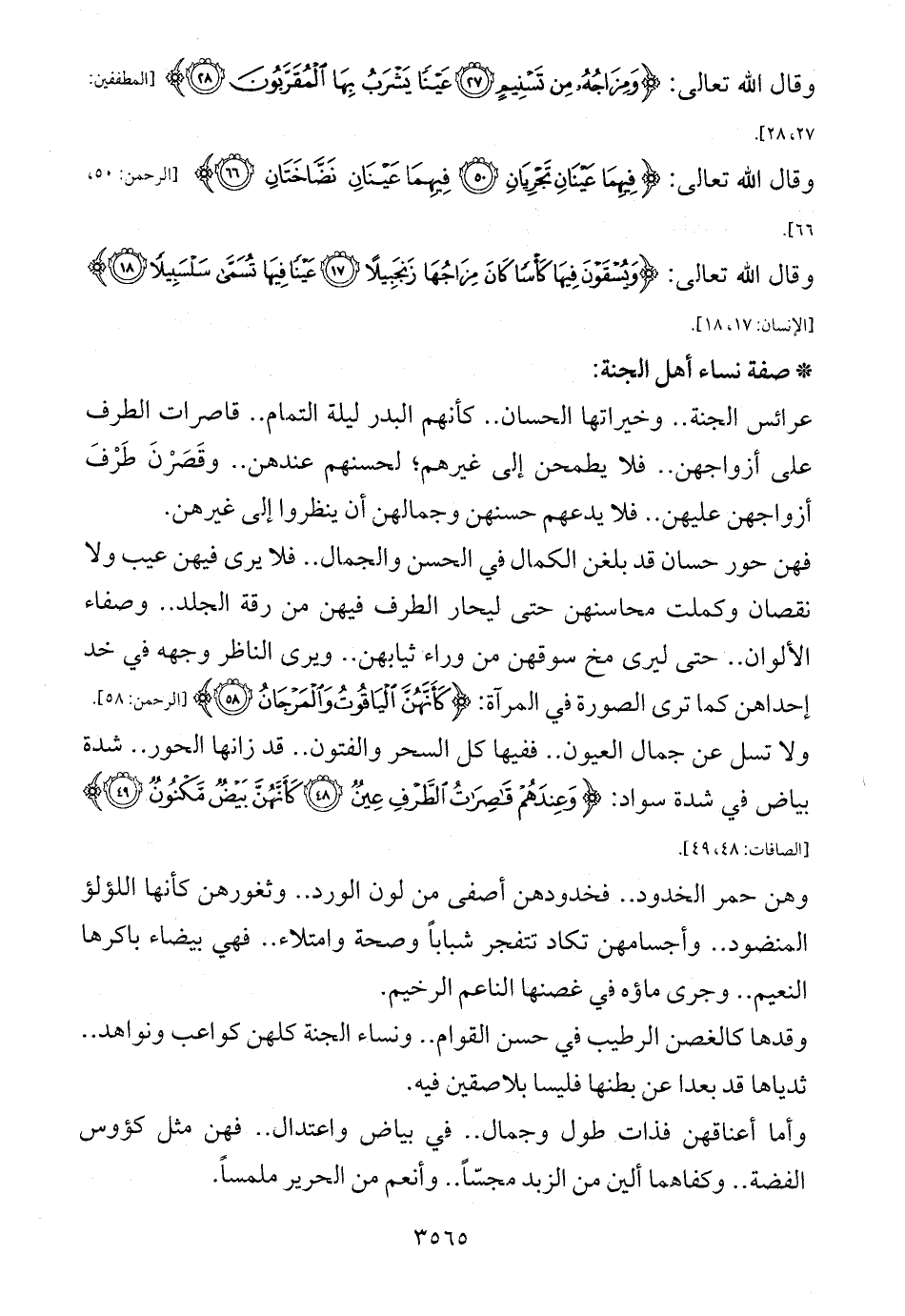 ولا تسل عن جمال العيون .. ففيها كل السحر والفتون .. قد زانها الحور .. شدة بياض في شدة سواد: {وَعِنْدَهُمْ قَاصِرَاتُ الطَّرْفِ عِينٌ (48) كَأَنَّهُنَّ بَيْضٌ مَكْنُونٌ (49)} [الصافات: 48، 49].