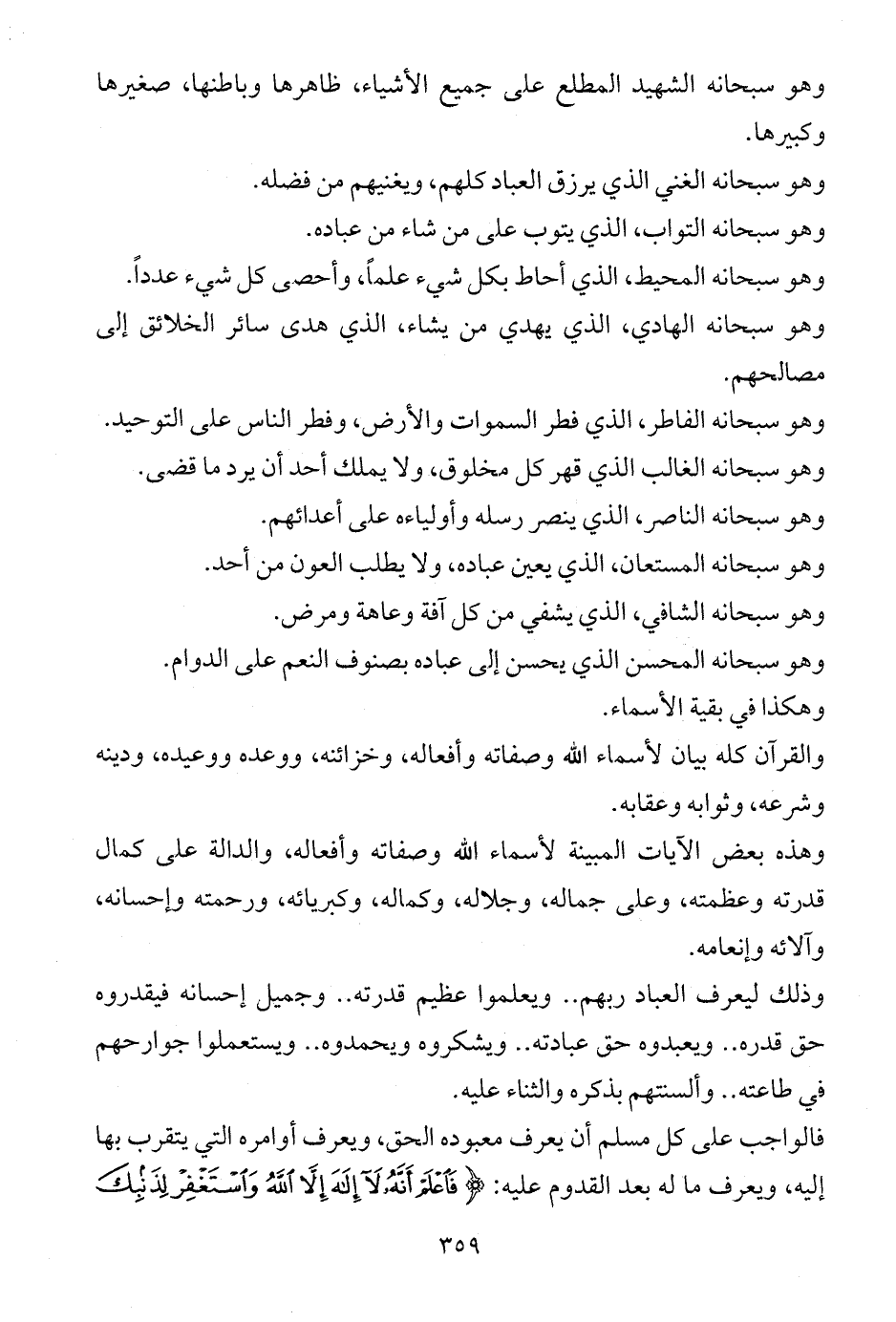 والقرآن كله بيان لأسماء الله وصفاته وأفعاله، وخزائنه، ووعده ووعيده، ودينه وشرعه، وثوابه وعقابه.