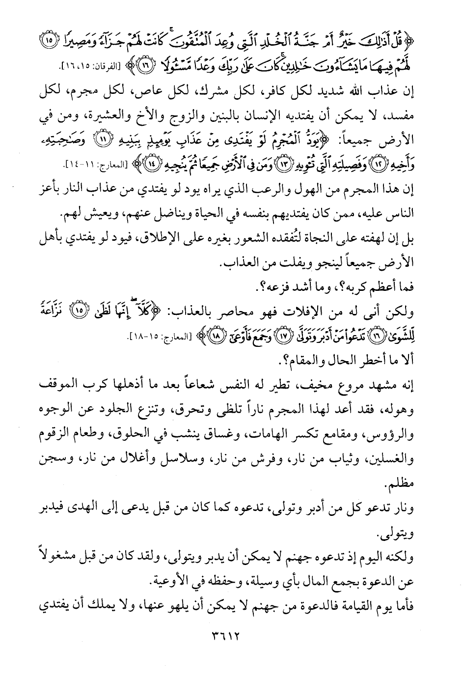 إن عذاب الله شديد لكل كافر، لكل مشرك، لكل عاص، لكل مجرم، لكل مفسد، لا يمكن أن يفتديه الإنسان بالبنين والزوج والأخ والعشيرة، ومن في الأرض جميعاً: {يَوَدُّ الْمُجْرِمُ لَوْ يَفْتَدِي مِنْ عَذَابِ يَوْمِئِذٍ بِبَنِيهِ (11) وَصَاحِبَتِهِ وَأَخِيهِ (12) وَفَصِيلَتِهِ الَّتِي تُؤْوِيهِ (13) وَمَنْ فِي الْأَرْضِ جَمِيعًا ثُمَّ يُنْجِيهِ (14)} [المعارج: 11 - 14].