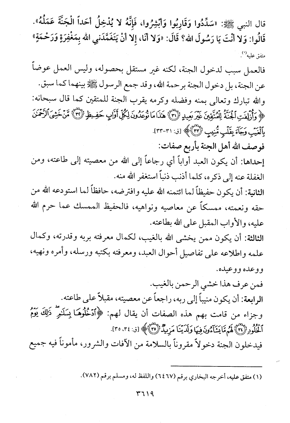 قال النبي - صلى الله عليه وسلم -: «سَدِّدُوا وَقَارِبُوا وَأبْشِرُوا، فَإِنَّهُ لا يُدْخِلُ أحَداً الْجَنَّةَ عَمَلُهُ». قَالُوا: وَلا أنْتَ يَا رَسُولَ الله؟ قَالَ: «وَلا أنَا، إِلا أنْ يَتَغَمَّدَنِي الله بِمَغْفِرَةٍ وَرَحْمَةٍ» متفق عليه (¬1).