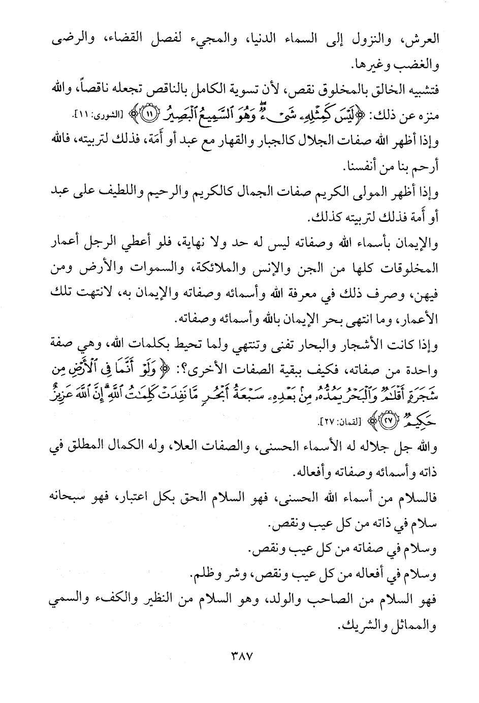 فهو السلام من الصاحب والولد، وهو السلام من النظير والكفء والسمي والمماثل والشريك.