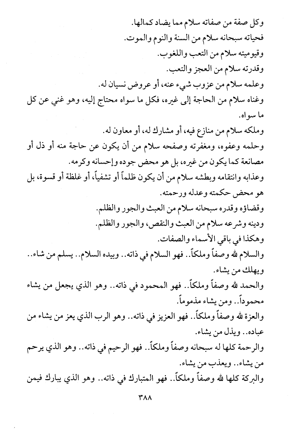 وغناه سلام من الحاجة إلى غيره، فكل ما سواه محتاج إليه، وهو غني عن كل ما سواه.