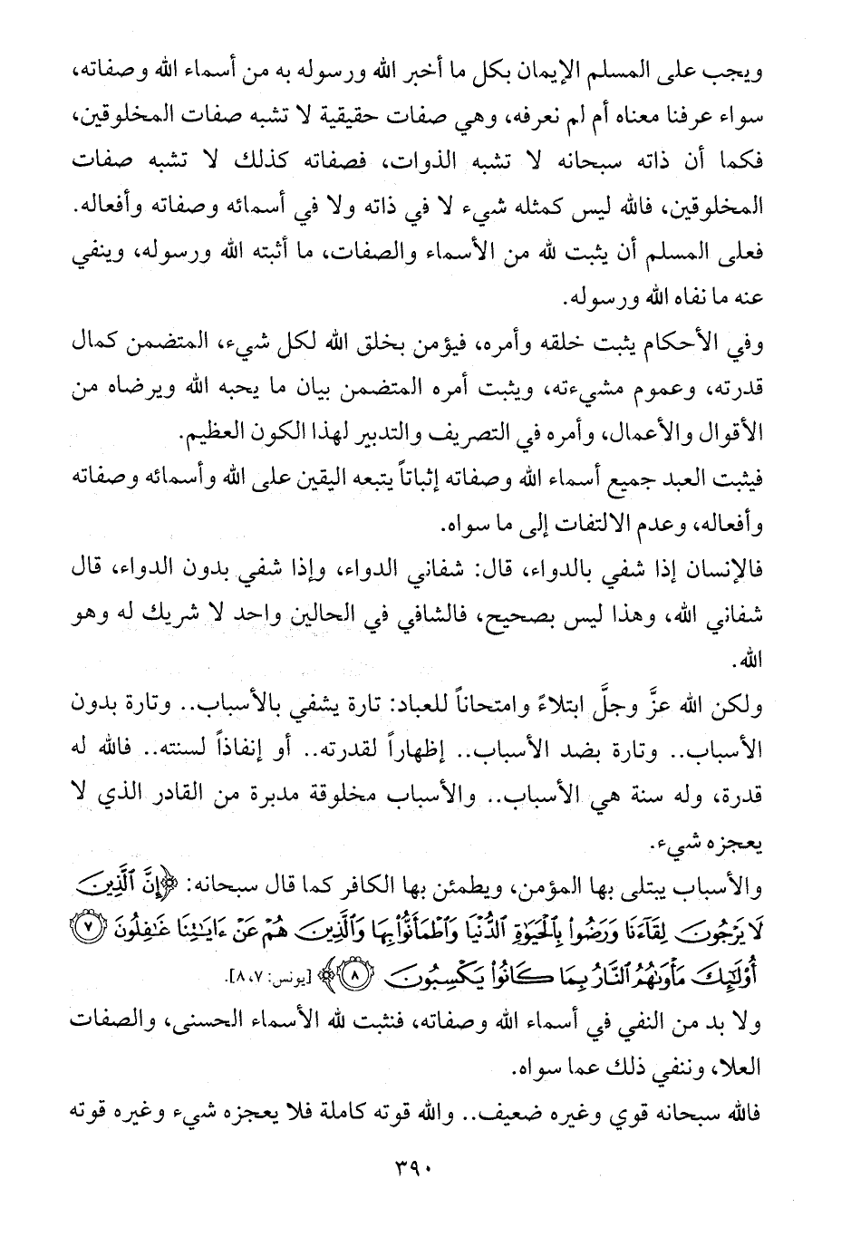 ويجب على المسلم الإيمان بكل ما أخبر الله ورسوله به من أسماء الله وصفاته، سواء عرفنا معناه أم لم نعرفه، وهي صفات حقيقية لا تشبه صفات المخلوقين، فكما أن ذاته سبحانه لا تشبه الذوات، فصفاته كذلك لا تشبه صفات المخلوقين، فالله ليس كمثله شيء لا في ذاته ولا في أسمائه وصفاته وأفعاله.