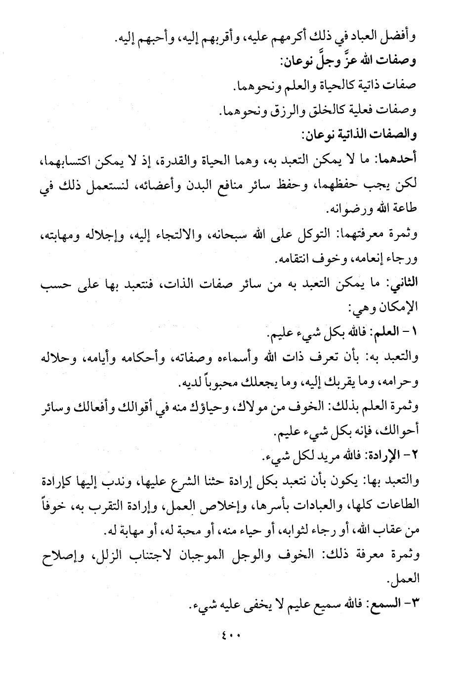 الثاني: ما يمكن التعبد به من سائر صفات الذات، فنتعبد بها على حسب الإمكان وهي: