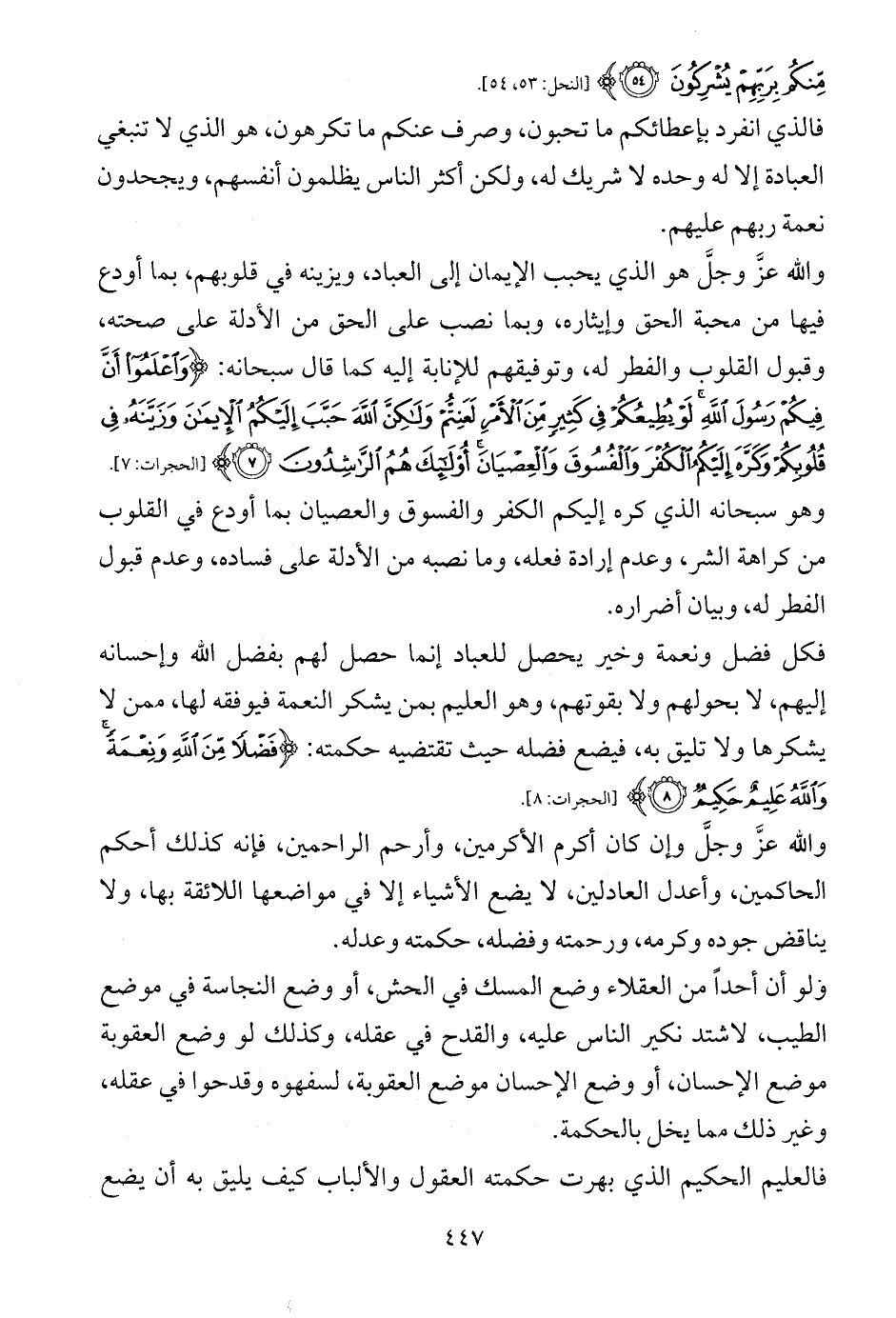 والله عزَّ وجلَّ وإن كان أكرم الأكرمين، وأرحم الراحمين، فإنه كذلك أحكم الحاكمين، وأعدل العادلين، لا يضع الأشياء إلا في مواضعها اللائقة بها، ولا يناقض جوده وكرمه، ورحمته وفضله، حكمته وعدله.