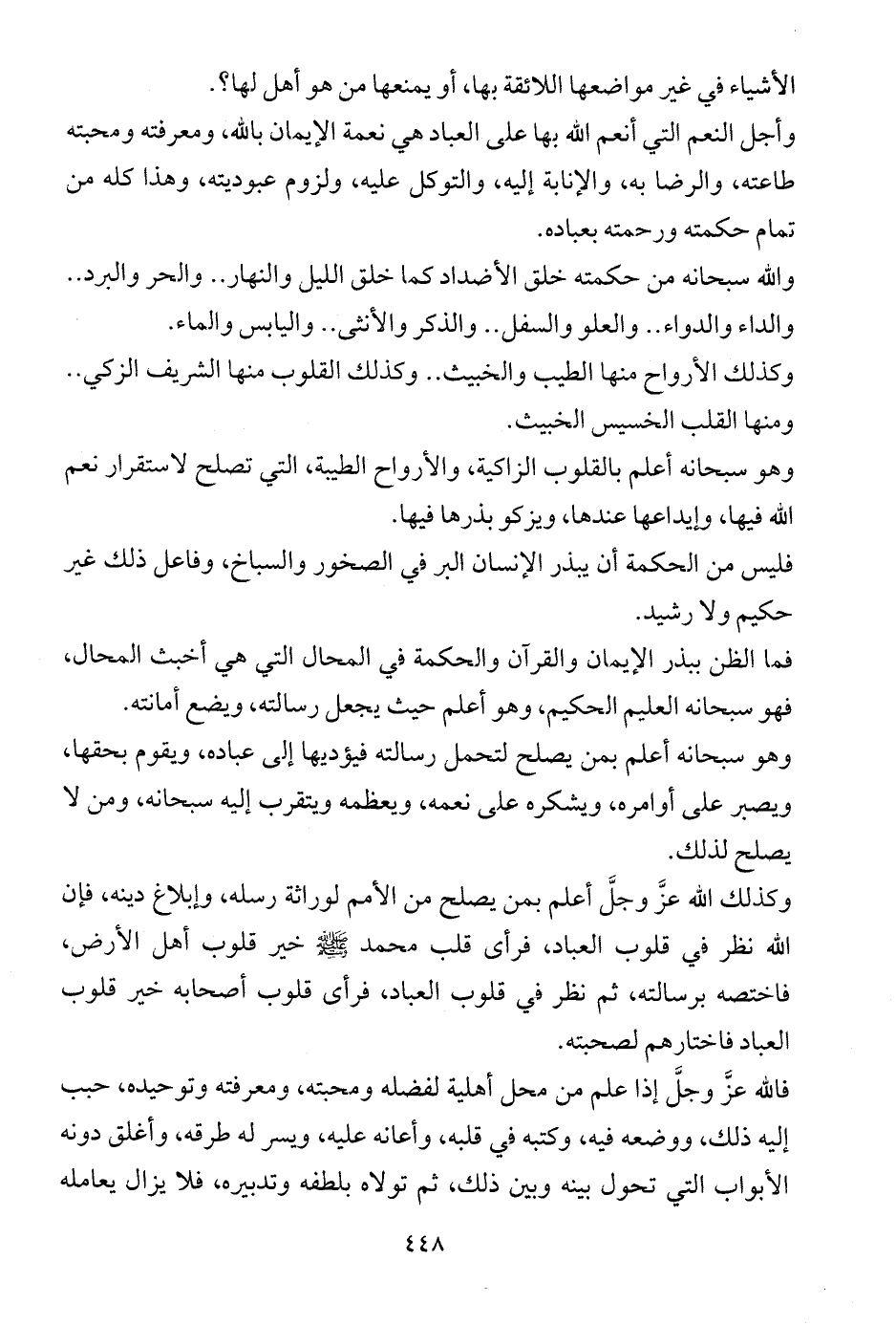 فما الظن ببذر الإيمان والقرآن والحكمة في المحال التي هي أخبث المحال، فهو سبحانه العليم الحكيم، وهو أعلم حيث يجعل رسالته، ويضع أمانته.