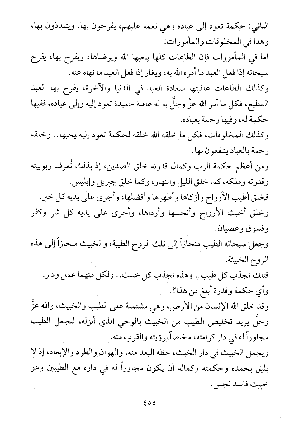 الثاني: حكمة تعود إلى عباده وهي نعمه عليهم، يفرحون بها، ويتلذذون بها، وهذا في المخلوقات والمأمورات: