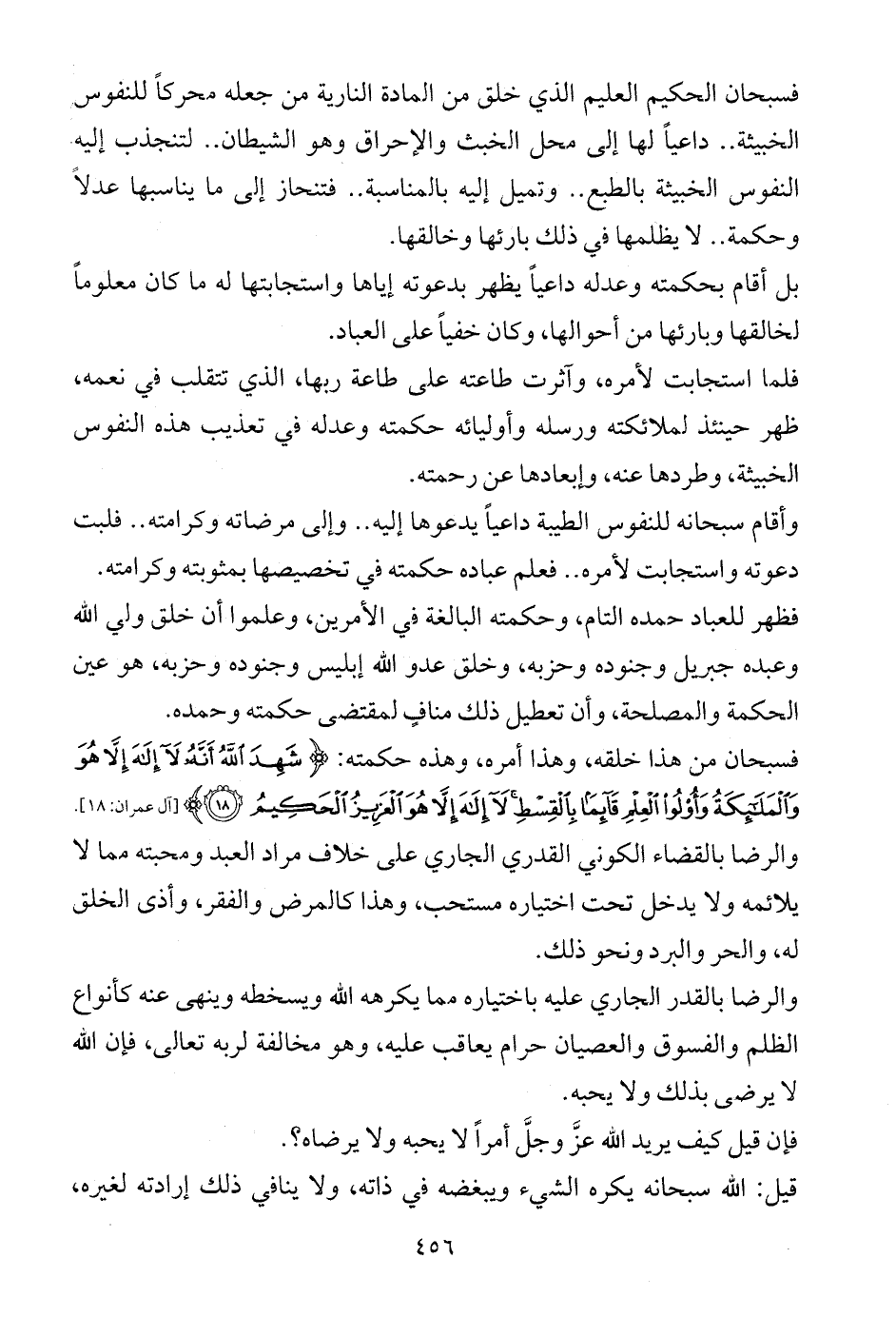 فسبحان من هذا خلقه، وهذا أمره، وهذه حكمته: {شَهِدَ اللَّهُ أَنَّهُ لَا إِلَهَ إِلَّا هُوَ وَالْمَلَائِكَةُ وَأُولُو الْعِلْمِ قَائِمًا بِالْقِسْطِ لَا إِلَهَ إِلَّا هُوَ الْعَزِيزُ الْحَكِيمُ (18)} [آل عمران: 18].