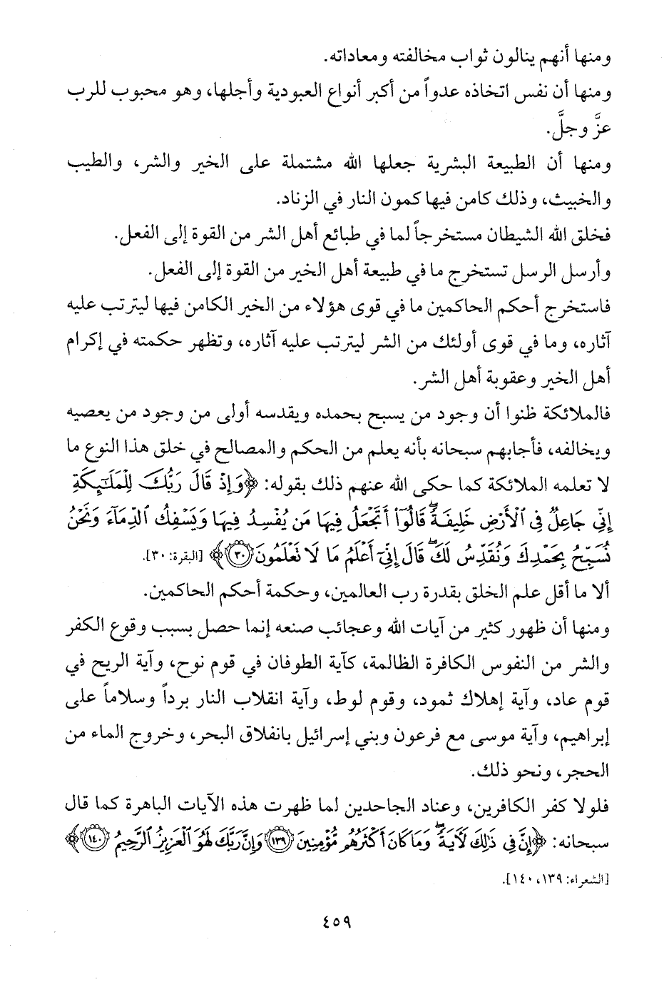ومنها أن الطبيعة البشرية جعلها الله مشتملة على الخير والشر، والطيب والخبيث، وذلك كامن فيها كمون النار في الزناد.