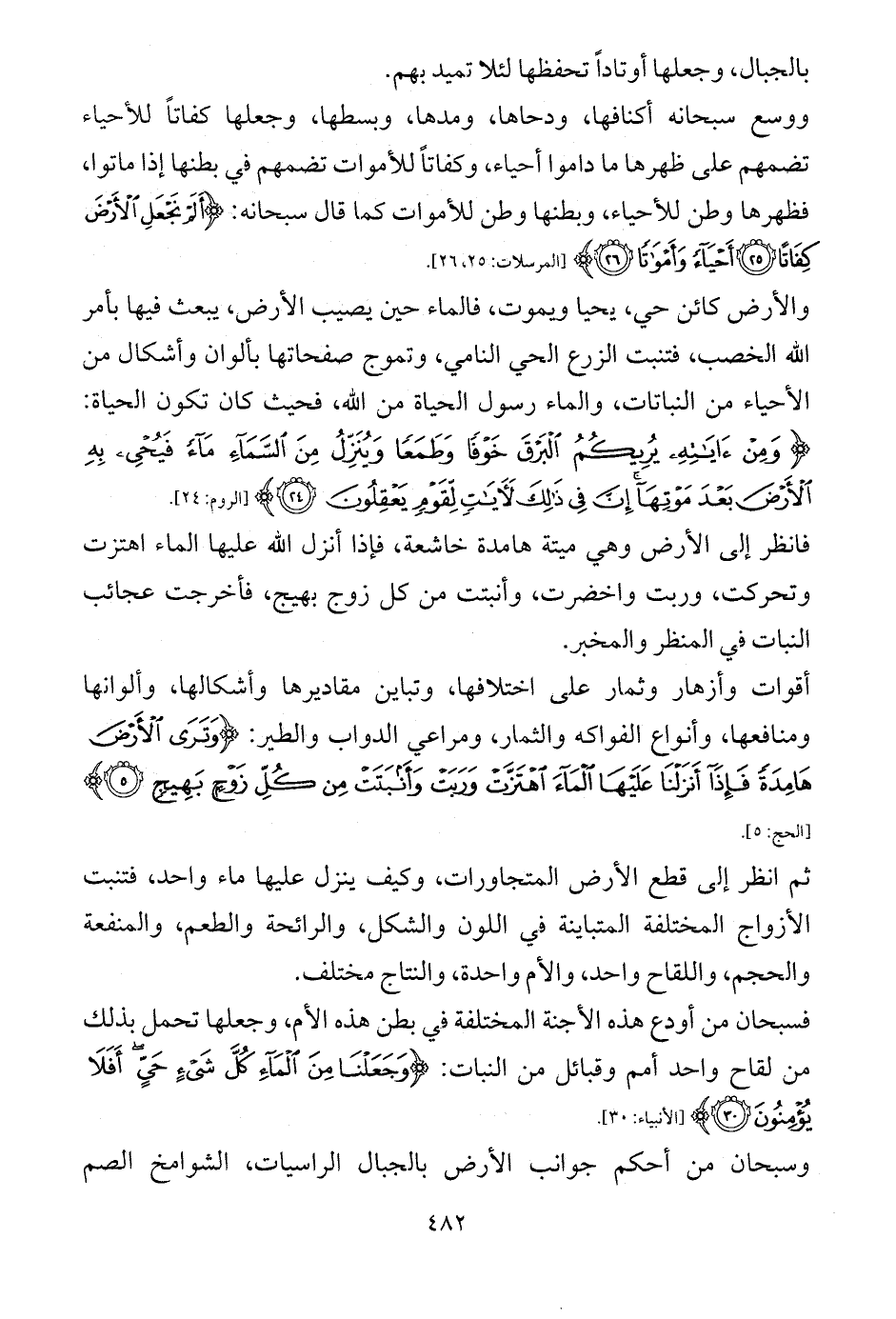 والأرض كائن حي، يحيا ويموت، فالماء حين يصيب الأرض، يبعث فيها بأمر الله الخصب، فتنبت الزرع الحي النامي، وتموج صفحاتها بألوان وأشكال من الأحياء من النباتات، والماء رسول الحياة من الله، فحيث كان تكون الحياة: {وَمِنْ آيَاتِهِ يُرِيكُمُ الْبَرْقَ خَوْفًا وَطَمَعًا وَيُنَزِّلُ مِنَ السَّمَاءِ مَاءً فَيُحْيِي بِهِ الْأَرْضَ بَعْدَ مَوْتِهَا إِنَّ فِي ذَلِكَ لَآيَاتٍ لِقَوْمٍ يَعْقِلُونَ (24)} [الروم: 24].