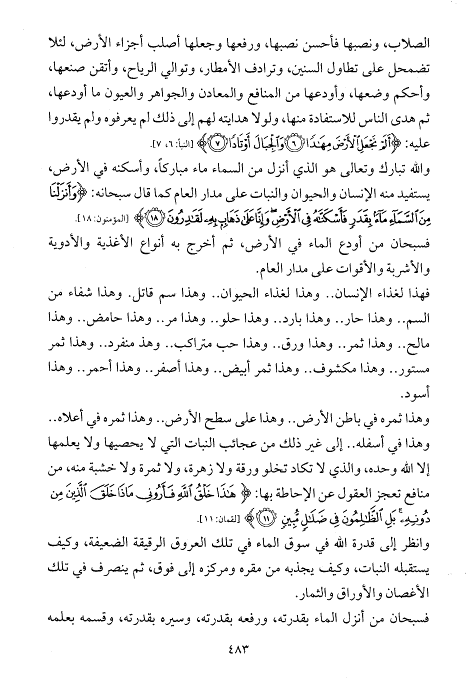 فسبحان من أنزل الماء بقدرته، ورفعه بقدرته، وسيره بقدرته، وقسمه بعلمه