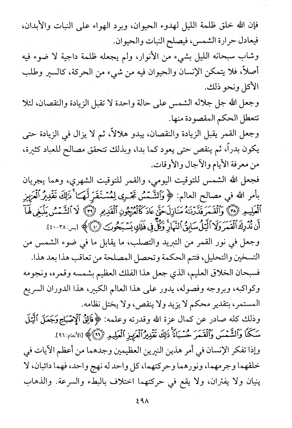 فسبحان الخلاق العليم، الذي جعل هذا الفلك العظيم بشمسه وقمره، ونجومه وكواكبه، وبروجه وفصوله، يدور على هذا العالم الكبير، هذا الدوران السريع المستمر، بتقدير محكم لا يزيد ولا ينقص، ولا يختل نظامه.