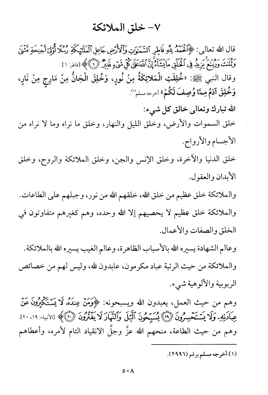 والملائكة خلق عظيم من خلق الله، خلقهم الله من نور، وجبلهم على الطاعات.