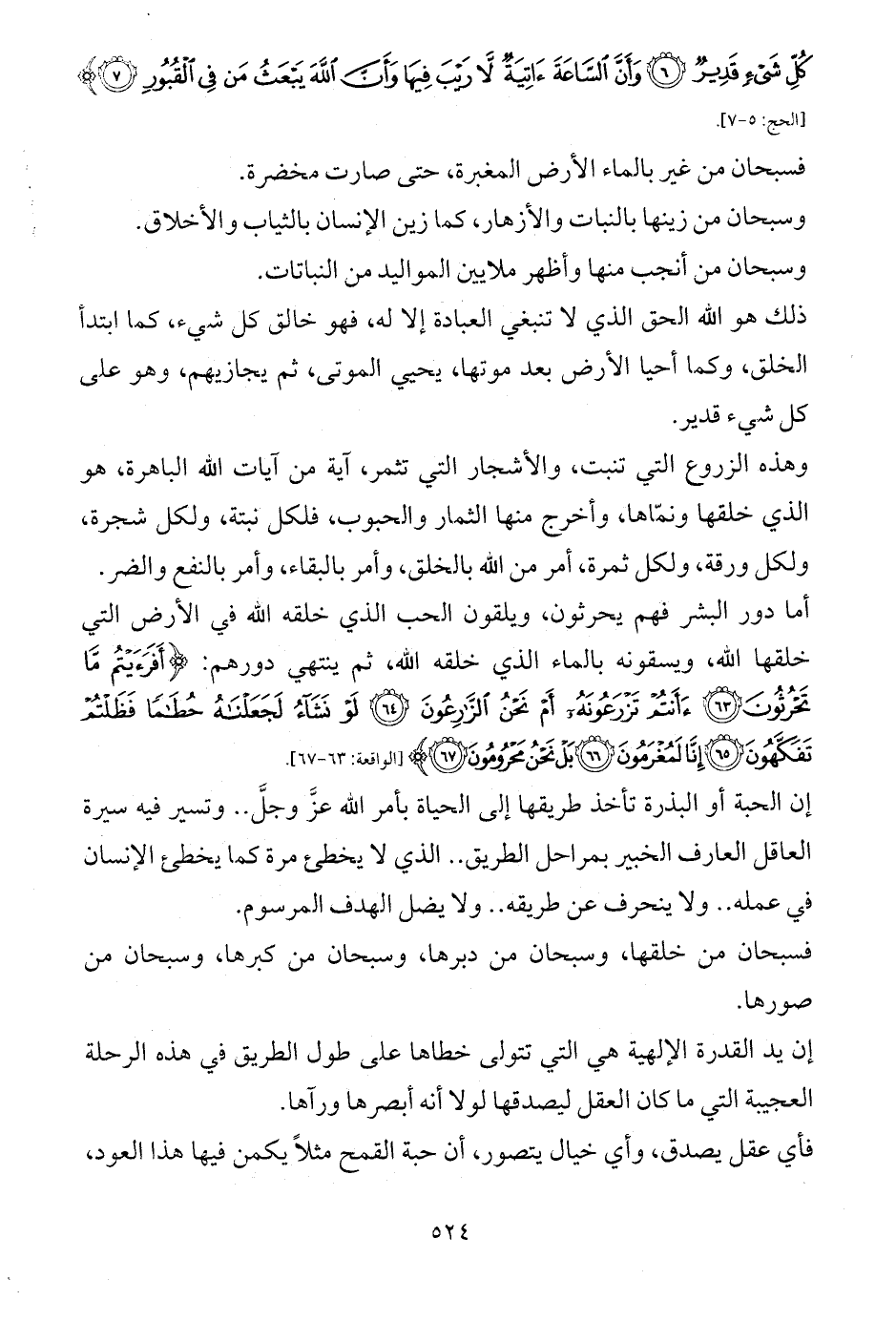 كُلِّ شَيْءٍ قَدِيرٌ (6) وَأَنَّ السَّاعَةَ آتِيَةٌ لَا رَيْبَ فِيهَا وَأَنَّ اللَّهَ يَبْعَثُ مَنْ فِي الْقُبُورِ (7)} [الحج: 5 - 7].