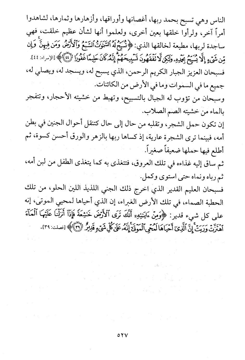 الناس وهي تسبح بحمد ربها، أغصانها وأوراقها، وأزهارها وثمارها، لشاهدوا أمراً آخر، ولرأوا خلقها بعين أخرى، ولعلموا أنها لشأن عظيم خلقت، فهي ساجدة لربها، مطيعة لخالقها الذي: {تُسَبِّحُ لَهُ السَّمَاوَاتُ السَّبْعُ وَالْأَرْضُ وَمَنْ فِيهِنَّ وَإِنْ مِنْ شَيْءٍ إِلَّا يُسَبِّحُ بِحَمْدِهِ وَلَكِنْ لَا تَفْقَهُونَ تَسْبِيحَهُمْ إِنَّهُ كَانَ حَلِيمًا غَفُورًا (44)} [الإسراء: 44].