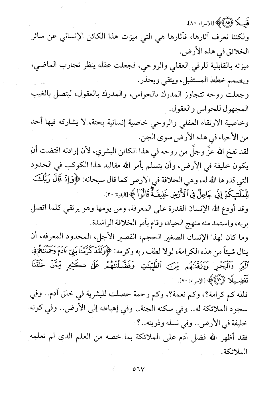 وقد أودع الله الإنسان القدرة على المعرفة، ومن يومها وهو يرتقي كلما اتصل بربه، واستمد منه منهج الحياة، وقام بأمر الخلافة الراشدة.