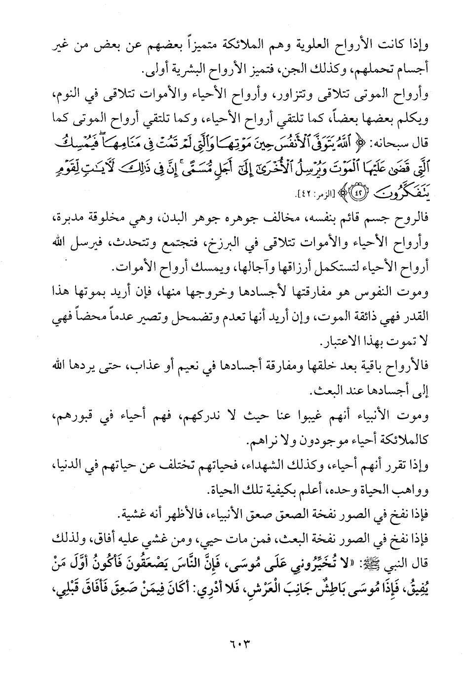 فالروح جسم قائم بنفسه، مخالف جوهره جوهر البدن، وهي مخلوقة مدبرة، وأرواح الأحياء والأموات تتلاقى في البرزخ، فتجتمع وتتحدث، فيرسل الله أرواح الأحياء لتستكمل أرزاقها وآجالها، ويمسك أرواح الأموات.