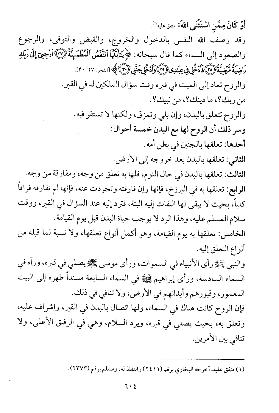 وقد وصف الله النفس بالدخول والخروج، والقبض والتوفي، والرجوع والصعود إلى السماء كما قال سبحانه: {يَاأَيَّتُهَا النَّفْسُ الْمُطْمَئِنَّةُ (27) ارْجِعِي إِلَى رَبِّكِ رَاضِيَةً مَرْضِيَّةً (28) فَادْخُلِي فِي عِبَادِي (29) وَادْخُلِي جَنَّتِي (30)} [الفجر: 27 - 30].