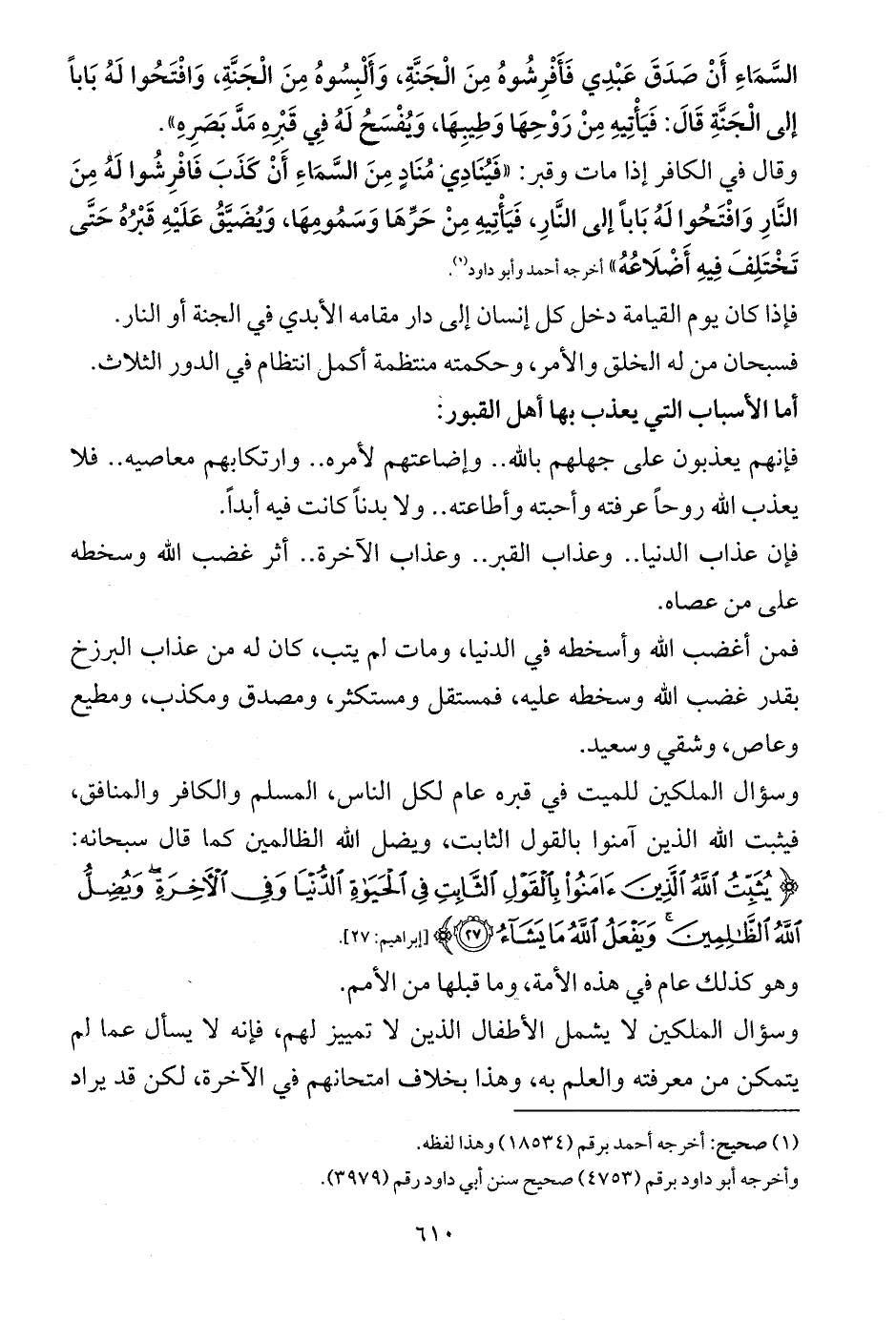 وسؤال الملكين للميت في قبره عام لكل الناس، المسلم والكافر والمنافق، فيثبت الله الذين آمنوا بالقول الثابت، ويضل الله الظالمين كما قال سبحانه: {يُثَبِّتُ اللَّهُ الَّذِينَ آمَنُوا بِالْقَوْلِ الثَّابِتِ فِي الْحَيَاةِ الدُّنْيَا وَفِي الْآخِرَةِ وَيُضِلُّ اللَّهُ الظَّالِمِينَ وَيَفْعَلُ اللَّهُ مَا يَشَاءُ (27)} [إبراهيم: 27].