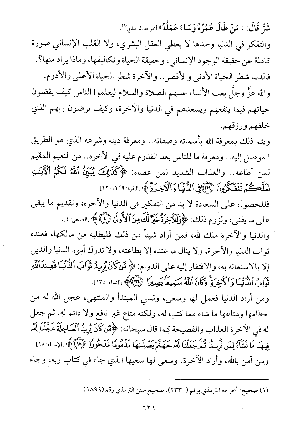 ويتم ذلك بمعرفة الله بأسمائه وصفاته .. ومعرفة دينه وشرعه الذي هو الطريق الموصل إليه .. ومعرفة ما للناس بعد القدوم عليه في الآخرة .. من النعيم المقيم لمن أطاعه .. والعذاب الشديد لمن عصاه: {كَذَلِكَ يُبَيِّنُ اللَّهُ لَكُمُ الْآيَاتِ لَعَلَّكُمْ تَتَفَكَّرُونَ (219) فِي الدُّنْيَا وَالْآخِرَةِ} [البقرة: 219، 220].