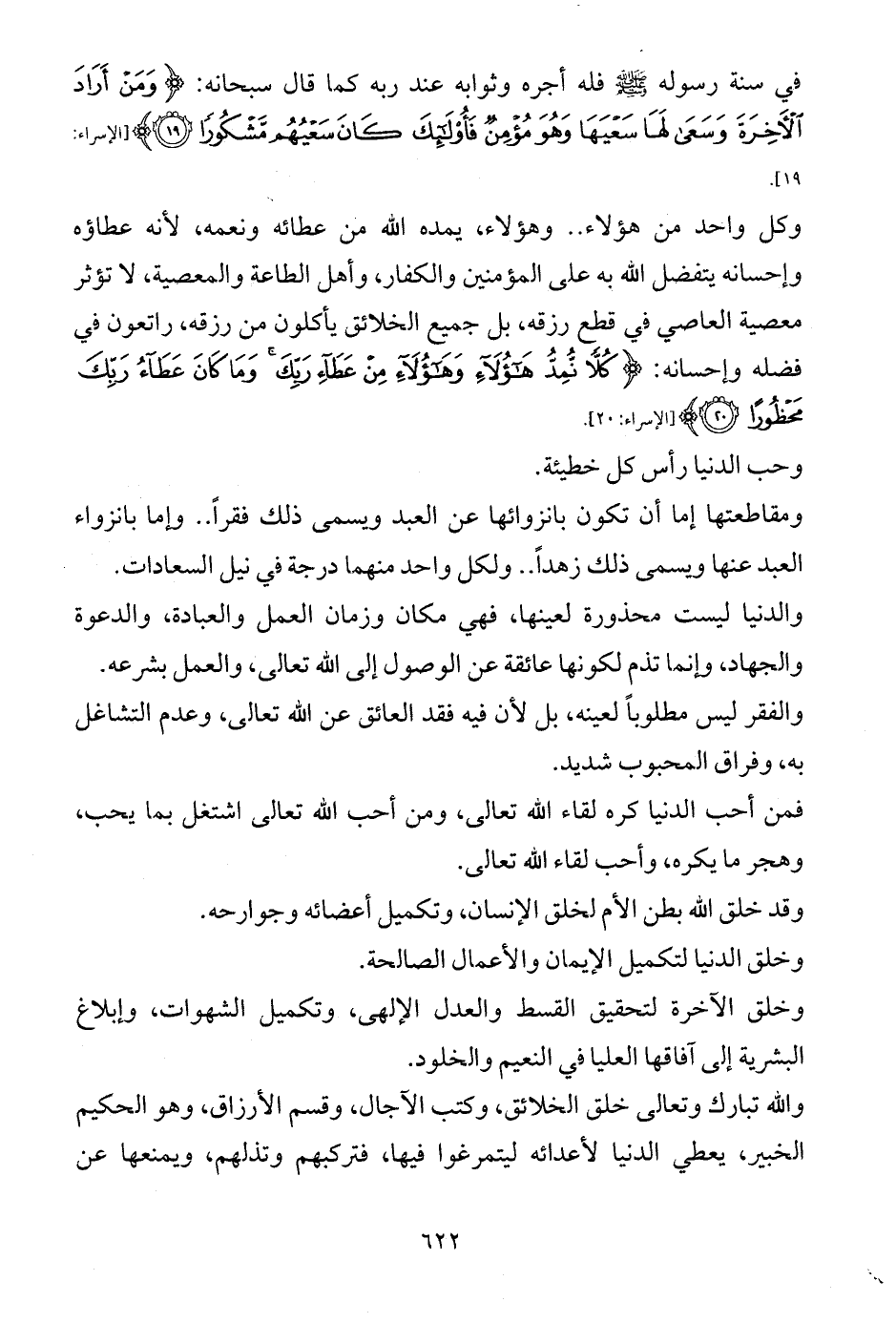 والدنيا ليست محذورة لعينها، فهي مكان وزمان العمل والعبادة، والدعوة والجهاد، وإنما تذم لكونها عائقة عن الوصول إلى الله تعالى، والعمل بشرعه.