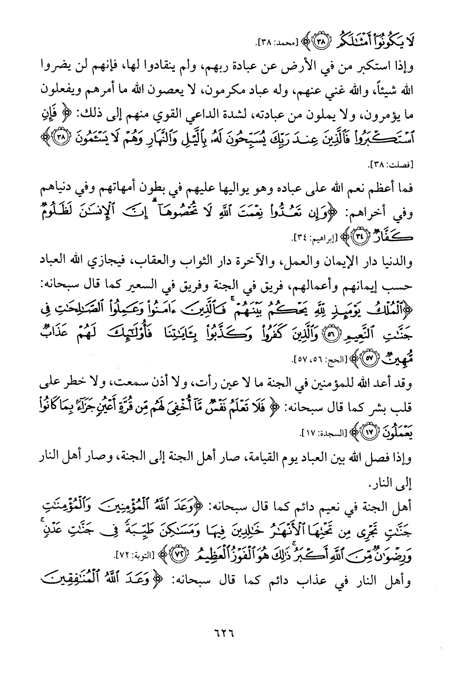 والدنيا دار الإيمان والعمل، والآخرة دار الثواب والعقاب، فيجازي الله العباد حسب إيمانهم وأعمالهم، فريق في الجنة وفريق في السعير كما قال سبحانه: {الْمُلْكُ يَوْمَئِذٍ لِلَّهِ يَحْكُمُ بَيْنَهُمْ فَالَّذِينَ آمَنُوا وَعَمِلُوا الصَّالِحَاتِ فِي جَنَّاتِ النَّعِيمِ (56) وَالَّذِينَ كَفَرُوا وَكَذَّبُوا بِآيَاتِنَا فَأُولَئِكَ لَهُمْ عَذَابٌ مُهِينٌ (57)} [الحج: 56، 57].