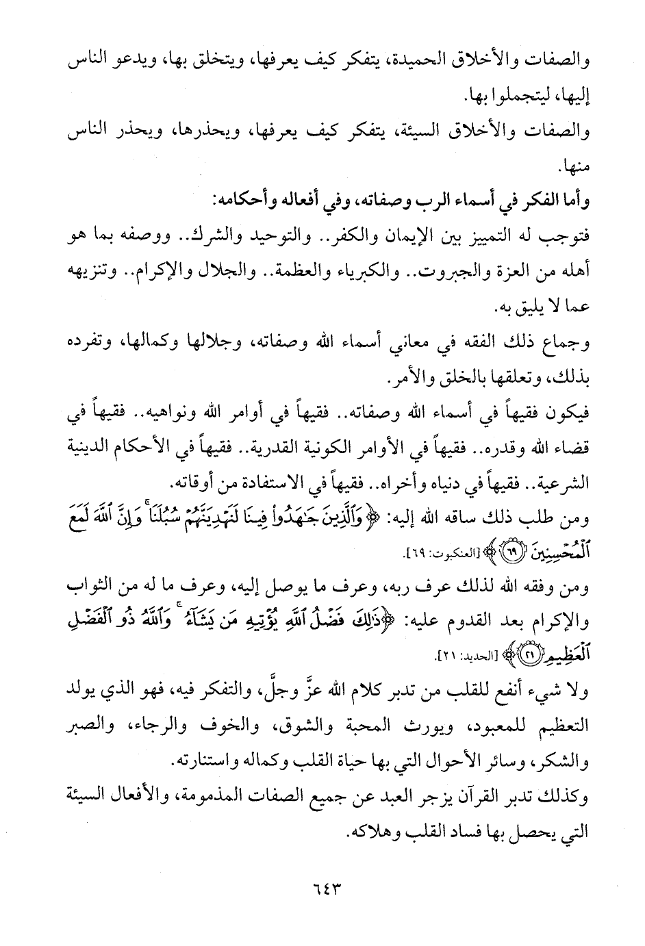 والصفات والأخلاق الحميدة، يتفكر كيف يعرفها، ويتخلق بها، ويدعو الناس إليها، ليتجملوا بها.