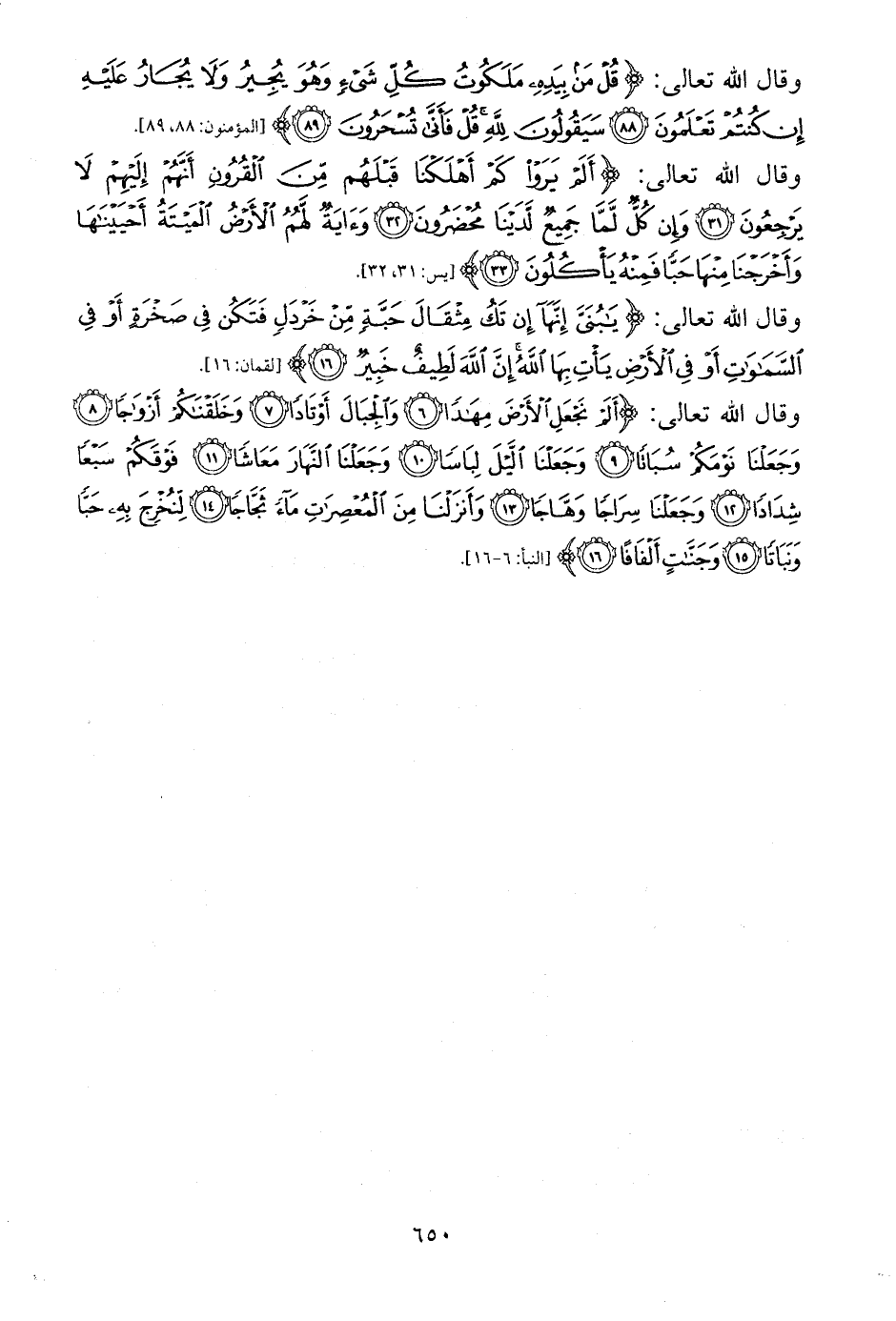 وقال الله تعالى: {أَلَمْ نَجْعَلِ الْأَرْضَ مِهَادًا (6) وَالْجِبَالَ أَوْتَادًا (7) وَخَلَقْنَاكُمْ أَزْوَاجًا (8) وَجَعَلْنَا نَوْمَكُمْ سُبَاتًا (9) وَجَعَلْنَا اللَّيْلَ لِبَاسًا (10) وَجَعَلْنَا النَّهَارَ مَعَاشًا (11) فَوْقَكُمْ سَبْعًا شِدَادًا (12) وَجَعَلْنَا سِرَاجًا وَهَّاجًا (13) وَأَنْزَلْنَا مِنَ الْمُعْصِرَاتِ مَاءً ثَجَّاجًا (14) لِنُخْرِجَ بِهِ حَبًّا وَنَبَاتًا (15) وَجَنَّاتٍ أَلْفَافًا (16)} [النبأ: 6 - 16].