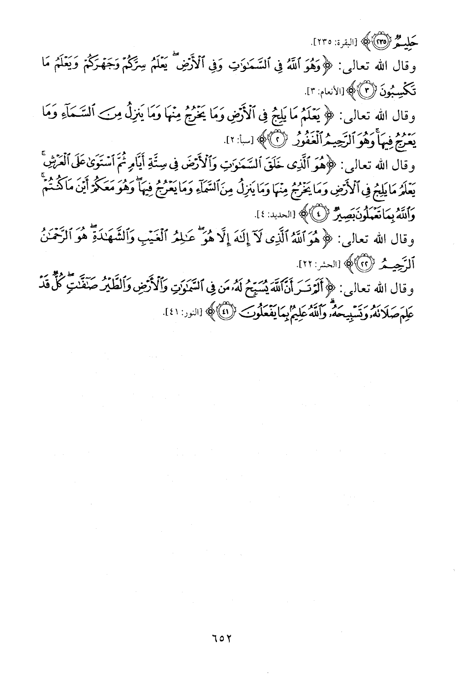 وقال الله تعالى: {هُوَ الَّذِي خَلَقَ السَّمَاوَاتِ وَالْأَرْضَ فِي سِتَّةِ أَيَّامٍ ثُمَّ اسْتَوَى عَلَى الْعَرْشِ يَعْلَمُ مَا يَلِجُ فِي الْأَرْضِ وَمَا يَخْرُجُ مِنْهَا وَمَا يَنْزِلُ مِنَ السَّمَاءِ وَمَا يَعْرُجُ فِيهَا وَهُوَ مَعَكُمْ أَيْنَ مَا كُنْتُمْ وَاللَّهُ بِمَا تَعْمَلُونَ بَصِيرٌ (4)} [الحديد: 4].