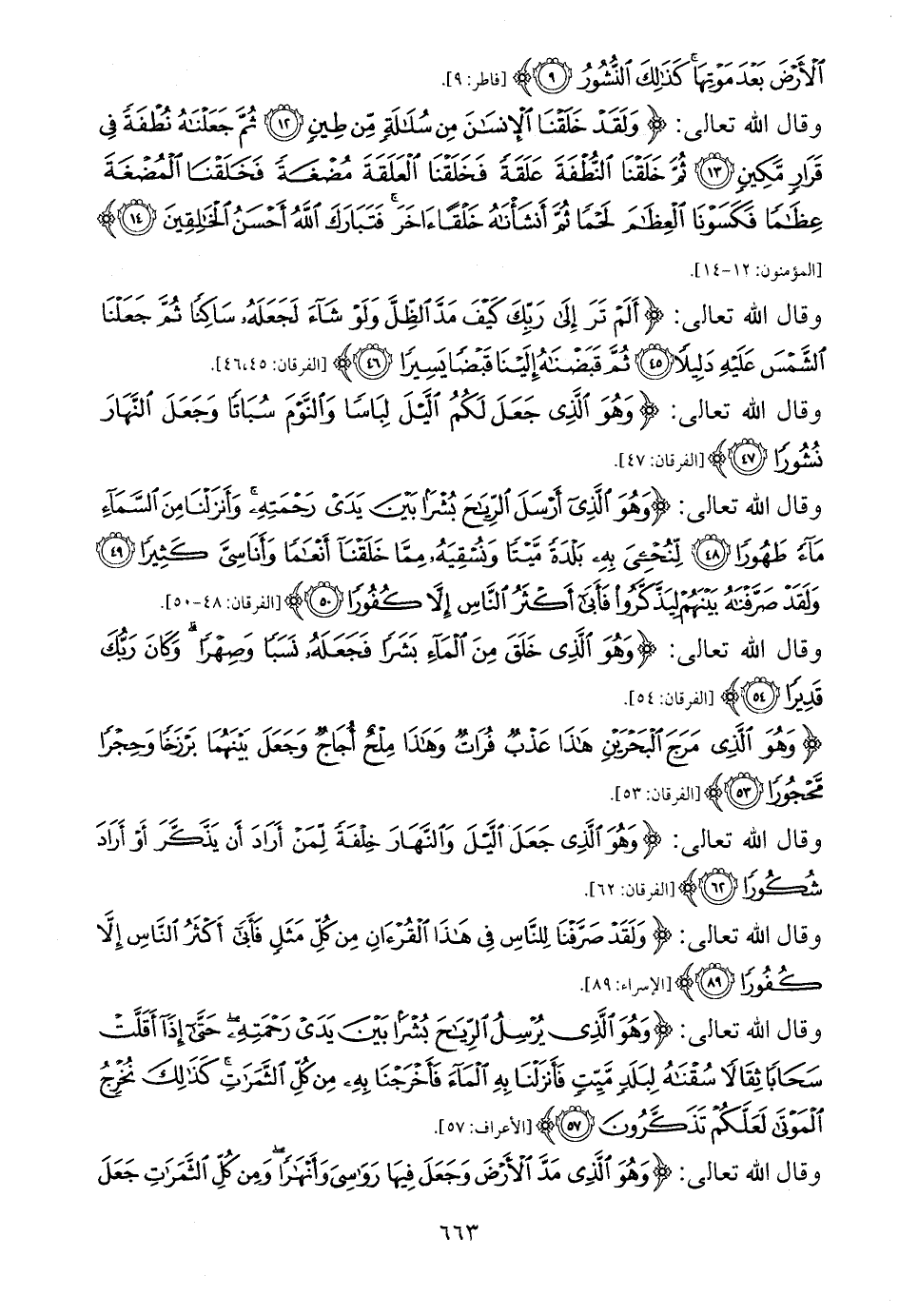 وقال الله تعالى: {وَهُوَ الَّذِي أَرْسَلَ الرِّيَاحَ بُشْرًا بَيْنَ يَدَيْ رَحْمَتِهِ وَأَنْزَلْنَا مِنَ السَّمَاءِ مَاءً طَهُورًا (48) لِنُحْيِيَ بِهِ بَلْدَةً مَيْتًا وَنُسْقِيَهُ مِمَّا خَلَقْنَا أَنْعَامًا وَأَنَاسِيَّ كَثِيرًا (49) وَلَقَدْ صَرَّفْنَاهُ بَيْنَهُمْ لِيَذَّكَّرُوا فَأَبَى أَكْثَرُ النَّاسِ إِلَّا كُفُورًا (50)} [الفرقان: 48 - 50].