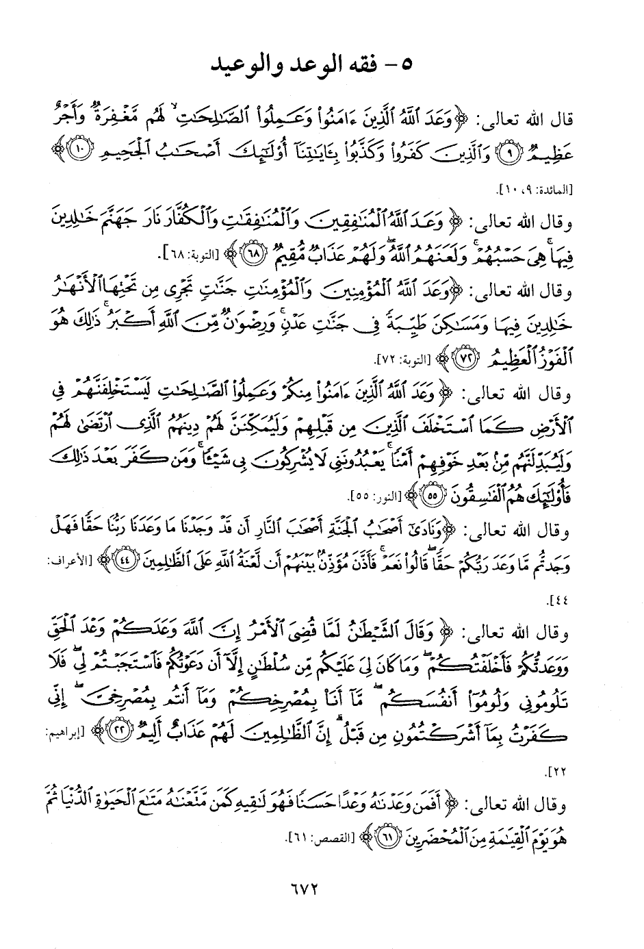 وقال الله تعالى: {وَعَدَ اللَّهُ الَّذِينَ آمَنُوا مِنْكُمْ وَعَمِلُوا الصَّالِحَاتِ لَيَسْتَخْلِفَنَّهُمْ فِي الْأَرْضِ كَمَا اسْتَخْلَفَ الَّذِينَ مِنْ قَبْلِهِمْ وَلَيُمَكِّنَنَّ لَهُمْ دِينَهُمُ الَّذِي ارْتَضَى لَهُمْ وَلَيُبَدِّلَنَّهُمْ مِنْ بَعْدِ خَوْفِهِمْ أَمْنًا يَعْبُدُونَنِي لَا يُشْرِكُونَ بِي شَيْئًا وَمَنْ كَفَرَ بَعْدَ ذَلِكَ فَأُولَئِكَ هُمُ الْفَاسِقُونَ (55)} [النور: 55].
