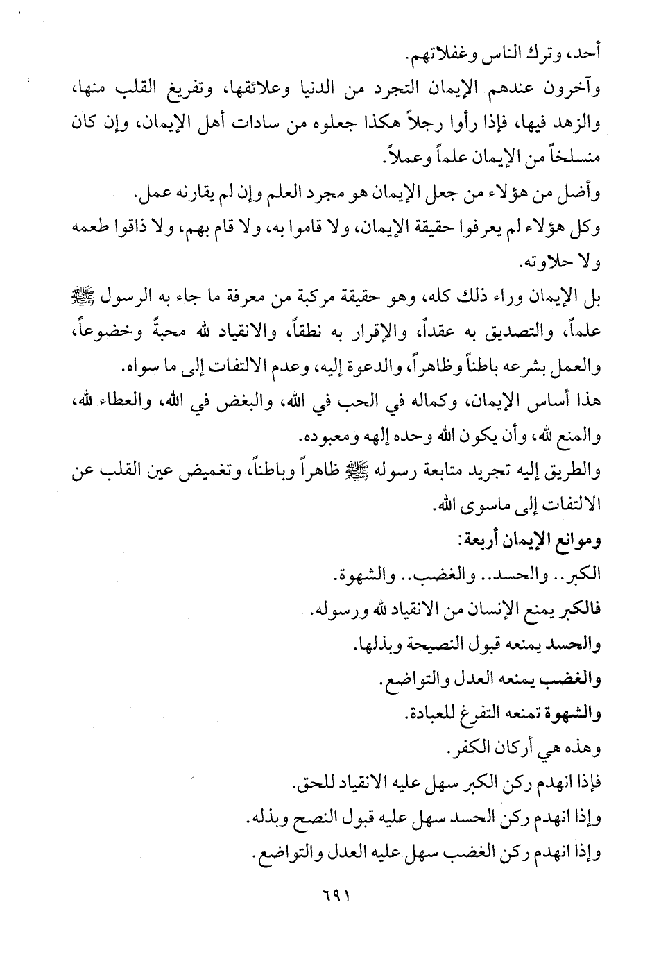 بل الإيمان وراء ذلك كله، وهو حقيقة مركبة من معرفة ما جاء به الرسول - صلى الله عليه وسلم - علماً، والتصديق به عقداً، والإقرار به نطقاً، والانقياد لله محبةً وخضوعاً، والعمل بشرعه باطناً وظاهراً، والدعوة إليه، وعدم الالتفات إلى ما سواه.