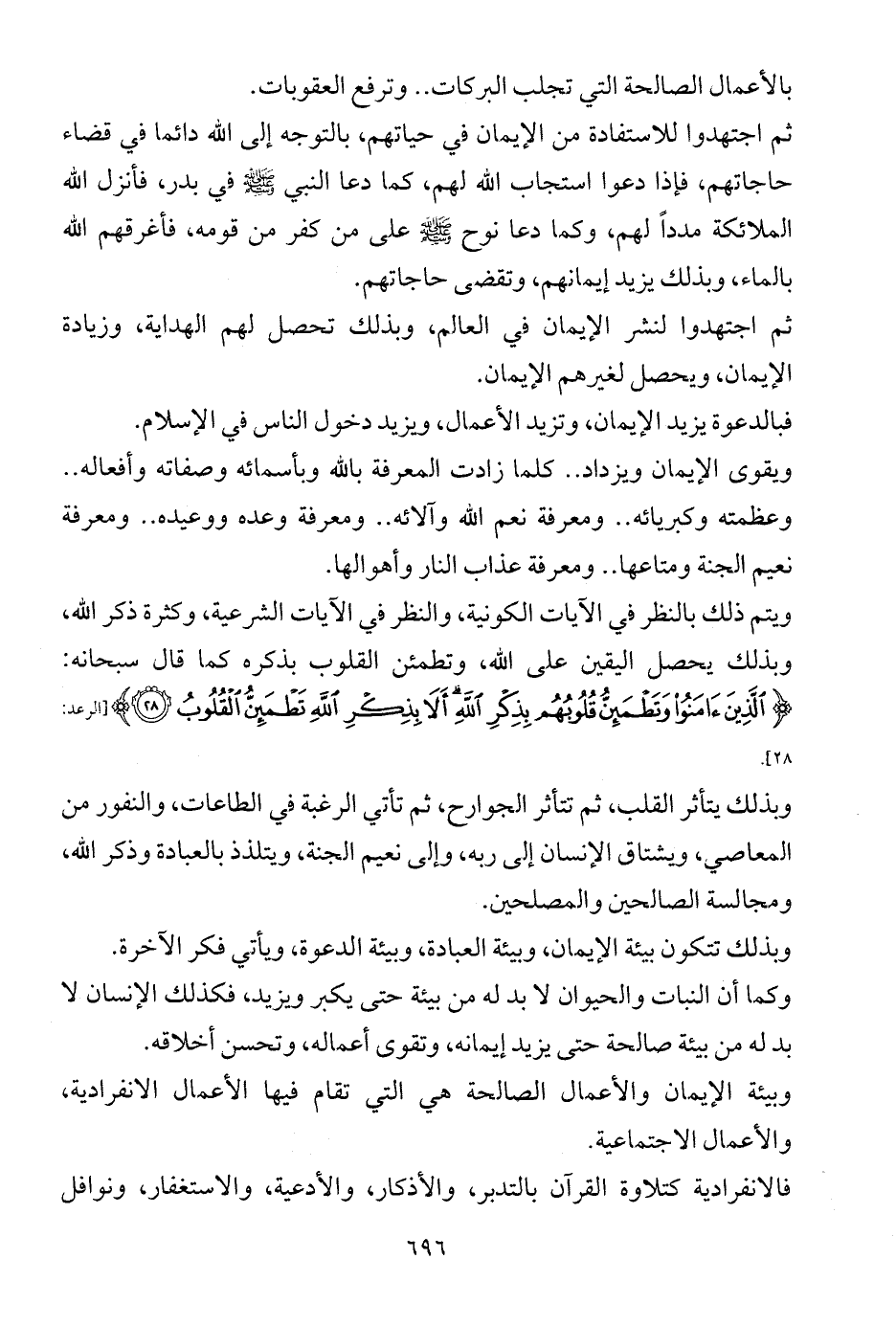 وبيئة الإيمان والأعمال الصالحة هي التي تقام فيها الأعمال الانفرادية، والأعمال الاجتماعية.