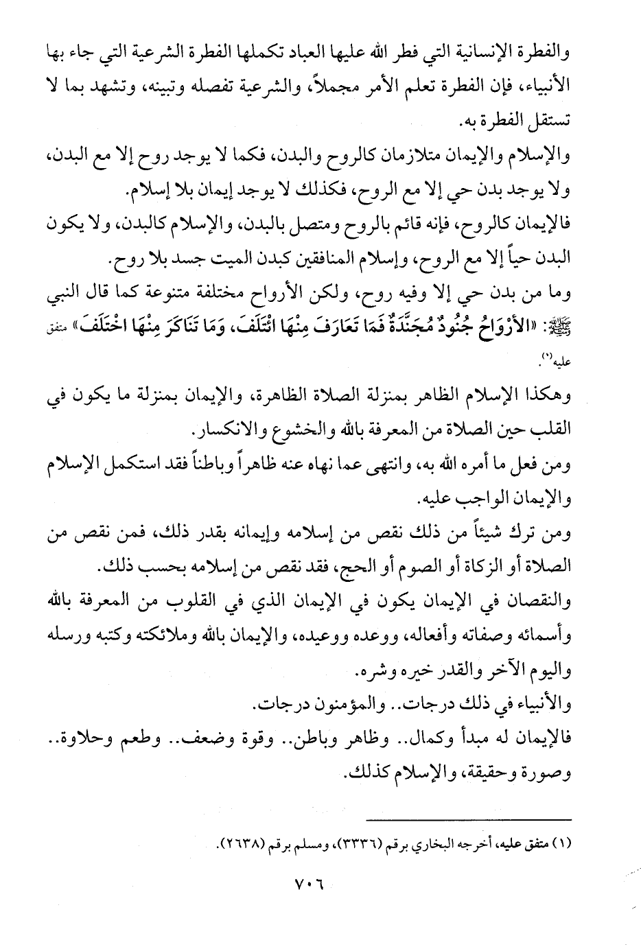 والإسلام والإيمان متلازمان كالروح والبدن، فكما لا يوجد روح إلا مع البدن، ولا يوجد بدن حي إلا مع الروح، فكذلك لا يوجد إيمان بلا إسلام.