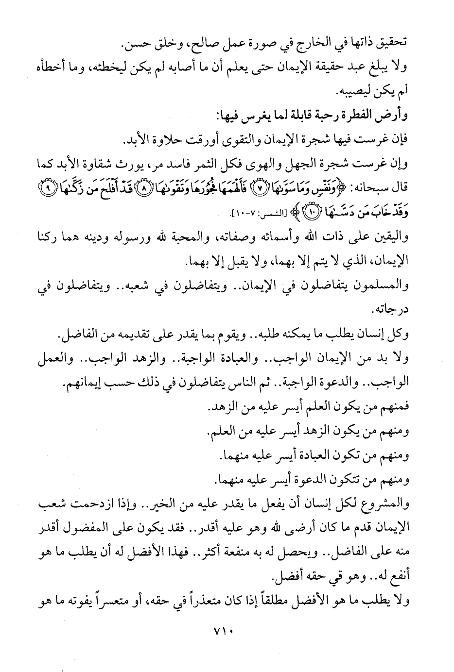 ولا بد من الإيمان الواجب .. والعبادة الواجبة .. والزهد الواجب .. والعمل الواجب .. والدعوة الواجبة .. ثم الناس يتفاضلون في ذلك حسب إيمانهم.