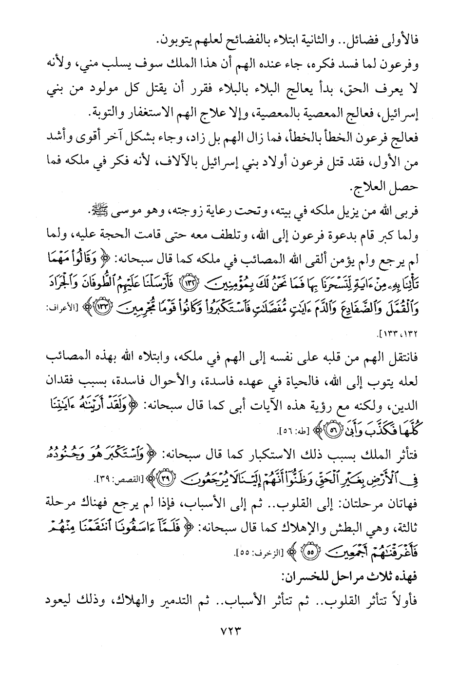 فهاتان مرحلتان: إلى القلوب .. ثم إلى الأسباب، فإذا لم يرجع فهناك مرحلة ثالثة، وهي البطش والإهلاك كما قال سبحانه: {فَلَمَّا آسَفُونَا انْتَقَمْنَا مِنْهُمْ فَأَغْرَقْنَاهُمْ أَجْمَعِينَ (55)} [الزخرف: 55].