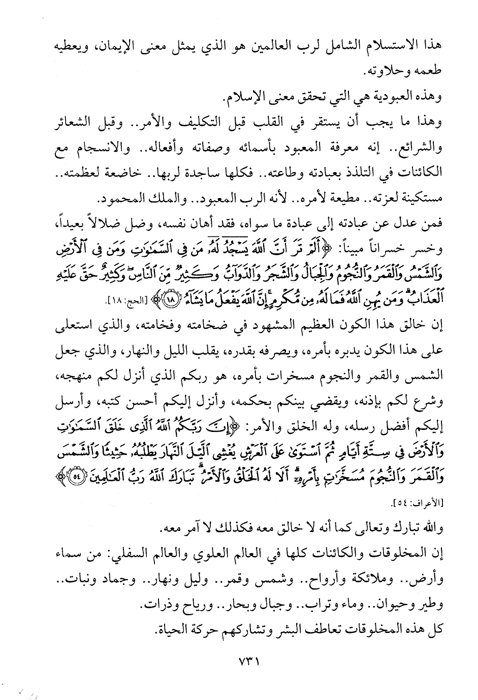 هذا الاستسلام الشامل لرب العالمين هو الذي يمثل معنى الإيمان، ويعطيه طعمه وحلاوته.